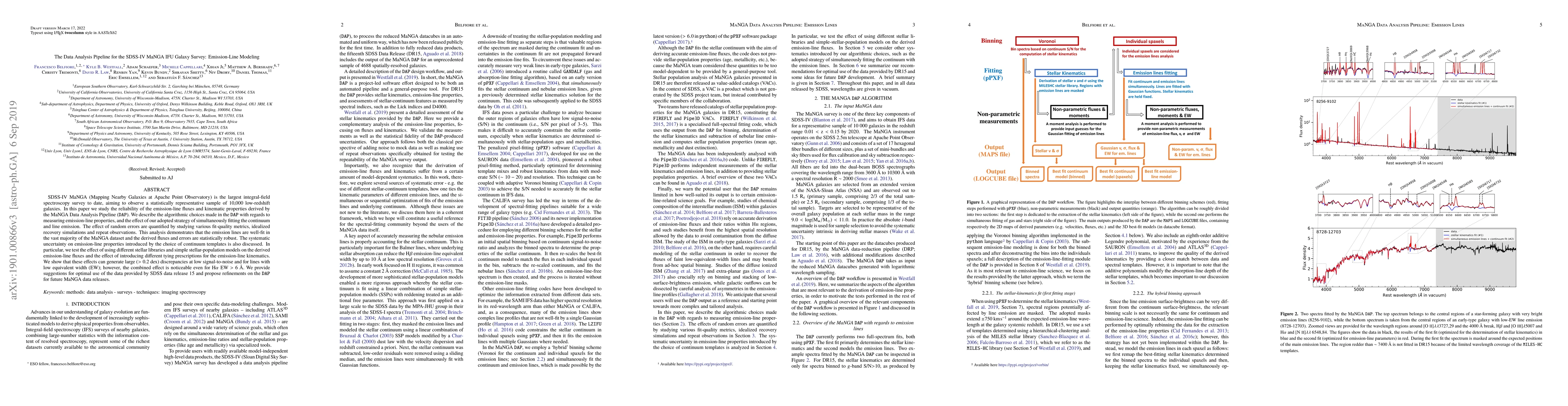 This paper evaluates the reliability of emission-line fluxes and kinematic properties derived from the MaNGA Data Analysis Pipeline, demonstrating robust fitting and statistically sound results. It also discusses systematic uncertainties from continuum template choices, highlighting significant discrepancies in low signal-to-noise regions.
