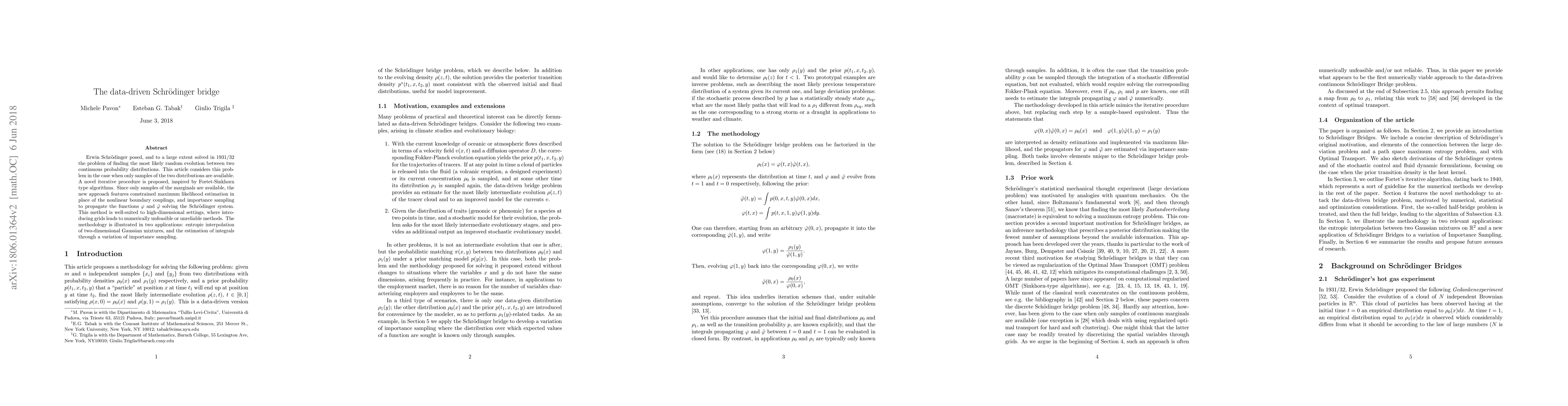 Erwin Schroedinger posed, and to a large extent solved in 1931/32 the problem of finding the most likely random evolution between two continuous probability distributions. This article considers this problem in the case when only samples of the two distributions are available. A novel iterative procedure is proposed, inspired by Fortet-Sinkhorn type algorithms. Since only samples of the marginals are available, the new approach features constrained maximum likelihood estimation in place of the nonlinear boundary couplings, and importance sampling to propagate the functions $\varphi$ and $\hat{\varphi}$ solving the Schroedinger system. This method is well-suited to high-dimensional settings, where introducing grids leads to numerically unfeasible or unreliable methods. The methodology is illustrated in two applications: entropic interpolation of two-dimensional Gaussian mixtures, and the estimation of integrals through a variation of importance sampling.