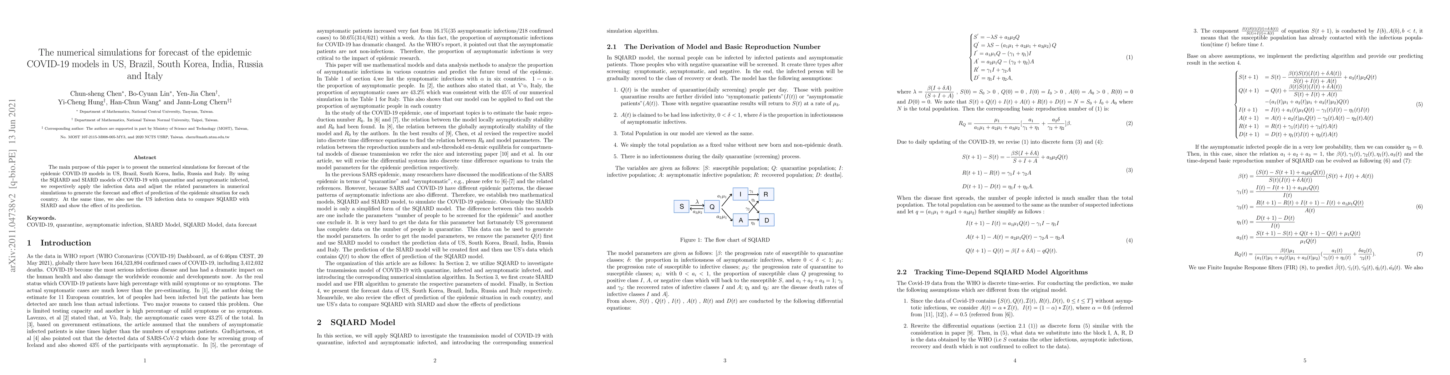In this paper, we firstly propose SQIARD and SIARD models to investigate the transmission of COVID-19 with quarantine, infected and asymptomatic infected, and discuss the relation between the respective basic reproduction number $R_0, R_Q$ and the stability of the equilibrium points of model. Secondly, after training the related data parameters, in our numerical simulations, we respectively conduct the forecast of the data of US, South Korea, Brazil, India, Russia and Italy, and the effect of prediction of the epidemic situation in each country. Furthermore, we apply US data to compare SQIARD with SIARD, and display the effects of predictions.