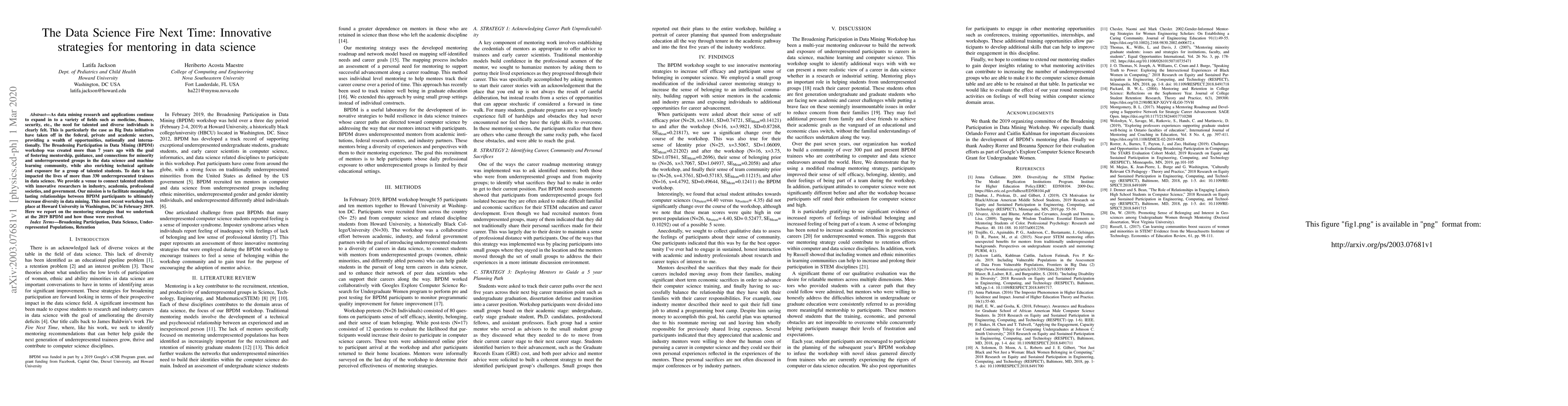 This paper discusses innovative mentoring strategies implemented at the 2019 Broadening Participation in Data Mining (BPDM) workshop to foster diversity in data science. The workshop aims to connect underrepresented trainees with industry and academic experts, ultimately increasing diversity in the field.