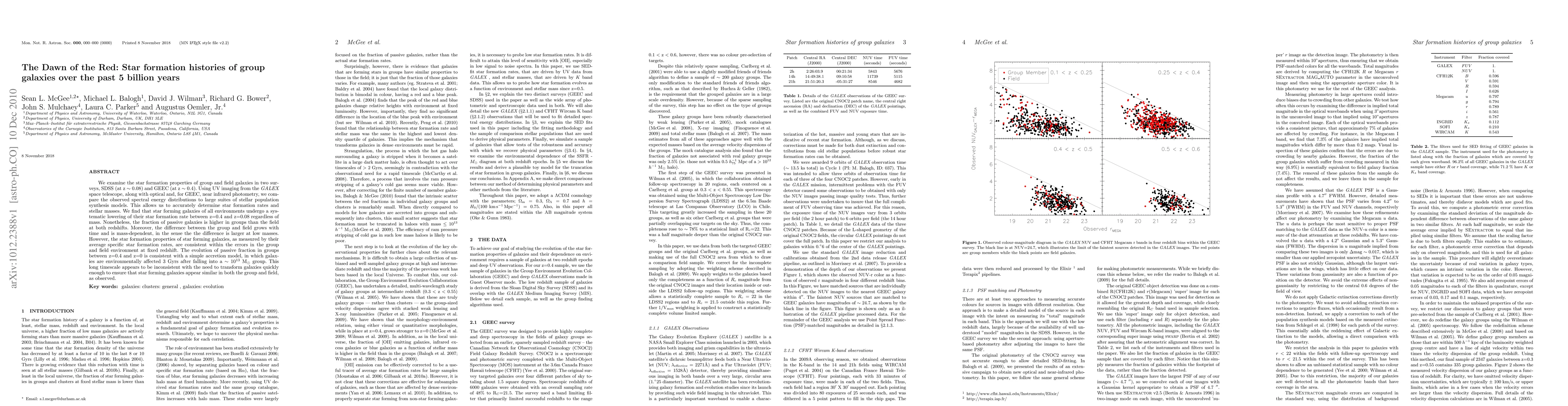 Galaxies in groups show a consistent decrease in star formation rates over time, but differ from field galaxies in their passive galaxy fractions, with the difference growing with age and mass.