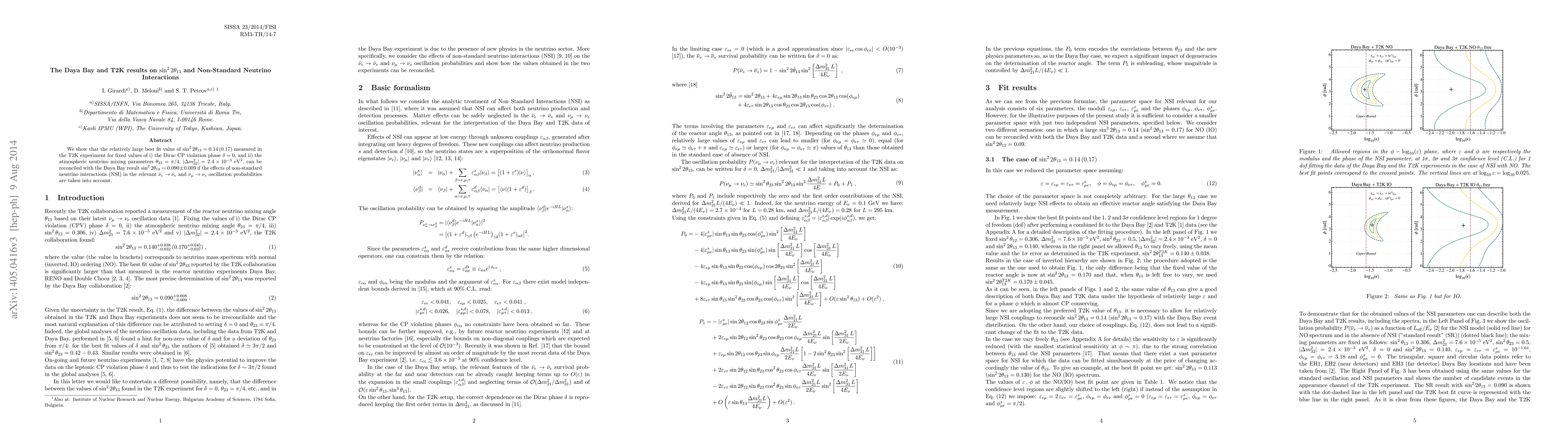 This paper reconciles the differing measurements of $\sin^2 2 \theta_{13}$ from the T2K and Daya Bay experiments by considering non-standard neutrino interactions (NSI) in the oscillation probabilities, suggesting that NSI effects can explain the discrepancy.
