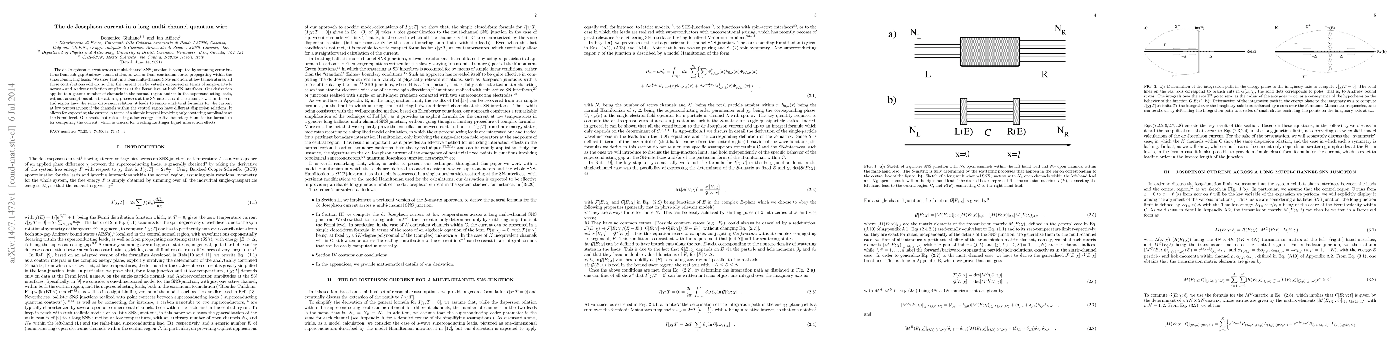 The dc Josephson current across a multi-channel SNS junction is computed by summing contributions from sub-gap Andreev bound states, as well as from continuum states propagating within the superconducting leads. We show that, in a long multi-channel SNS-junction, at low temperatures, all these contributions add up, so that the current can be entirely expressed in terms of single-particle normal- and Andreev reflection amplitudes at the Fermi level at both SN interfaces. Our derivation applies to a generic number of channels in the normal region and/or in the superconducting leads, without assumptions about scattering processes at the SN interfaces: if the channels within the central region have the same dispersion relation, it leads to simple analytical formulas for the current at low temperatures; if the channels within the central region have different dispersion relations, it allows for expressing the current in terms of a simple integral involving only scattering amplitudes at the Fermi level. Our result motivates using a low energy effective boundary Hamiltonian formalism for computing the current, which is crucial for treating Luttinger liquid interaction effects.