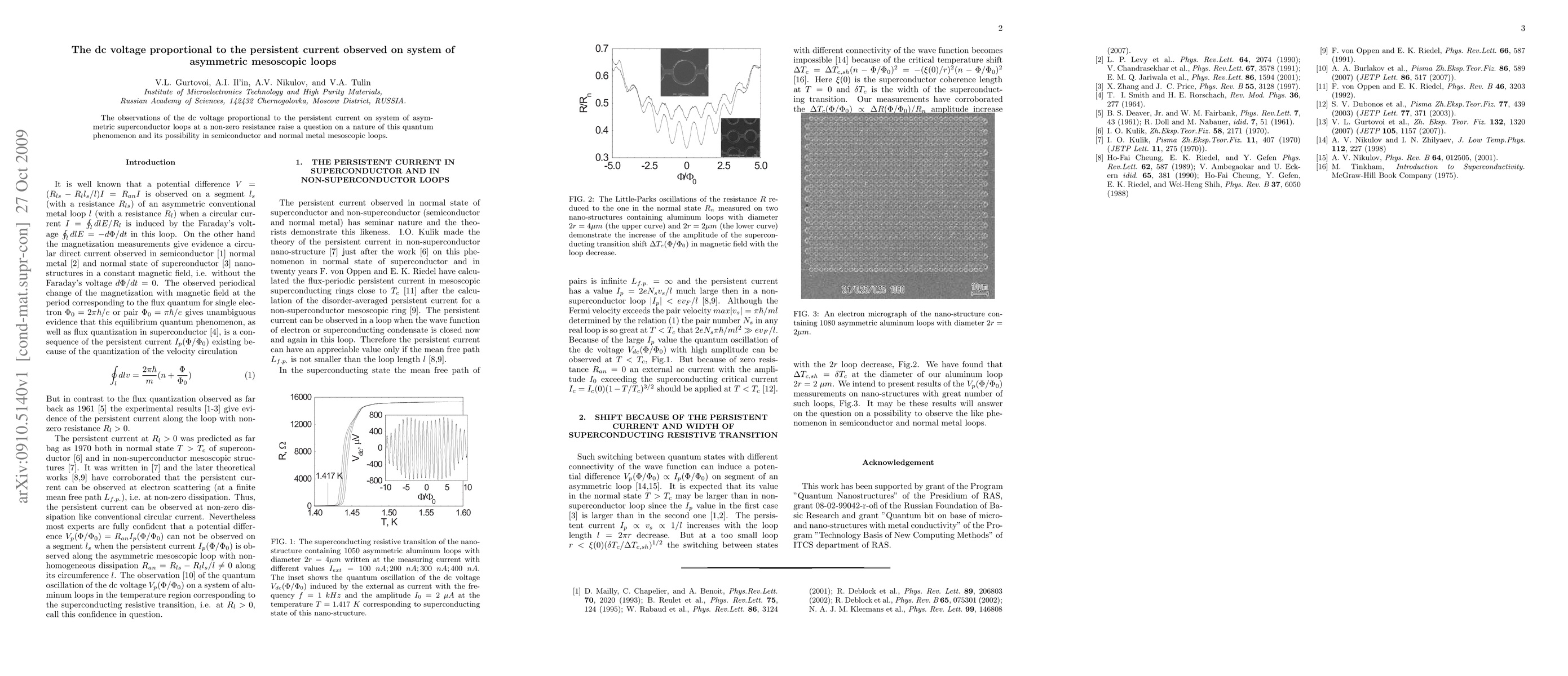 The observations of the dc voltage proportional to the persistent current on system of asymmetric superconductor loops at a non-zero resistance raise a question on a nature of this quantum phenomenon and its possibility in semiconductor and normal metal mesoscopic loops.