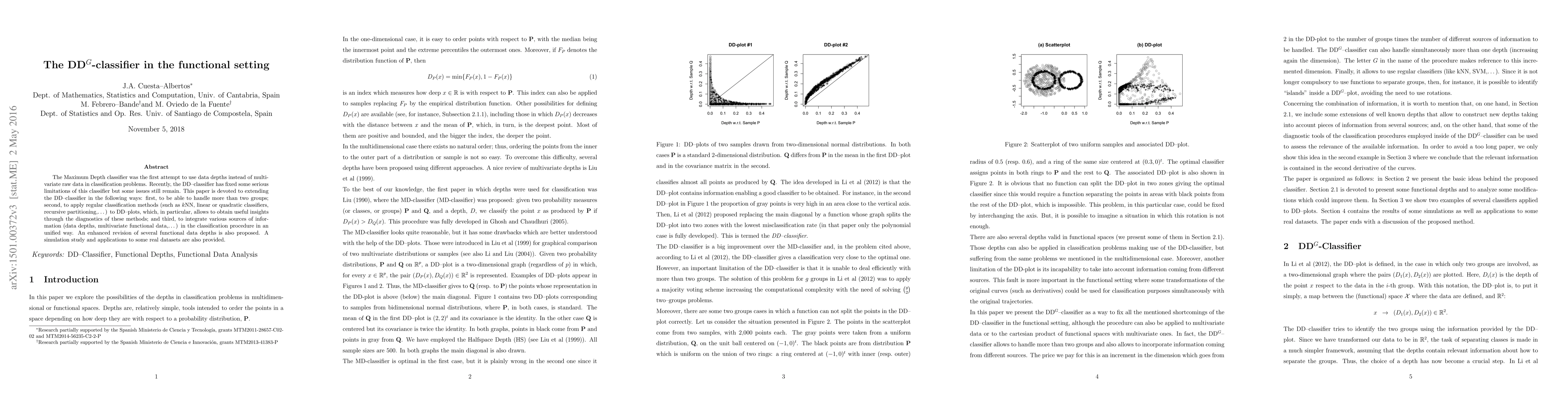 This paper extends the DD-classifier to handle multiple groups and integrates various classification methods with DD-plots, enhancing functional data depth measures. Simulation and real-data applications demonstrate the effectiveness of the proposed improvements.