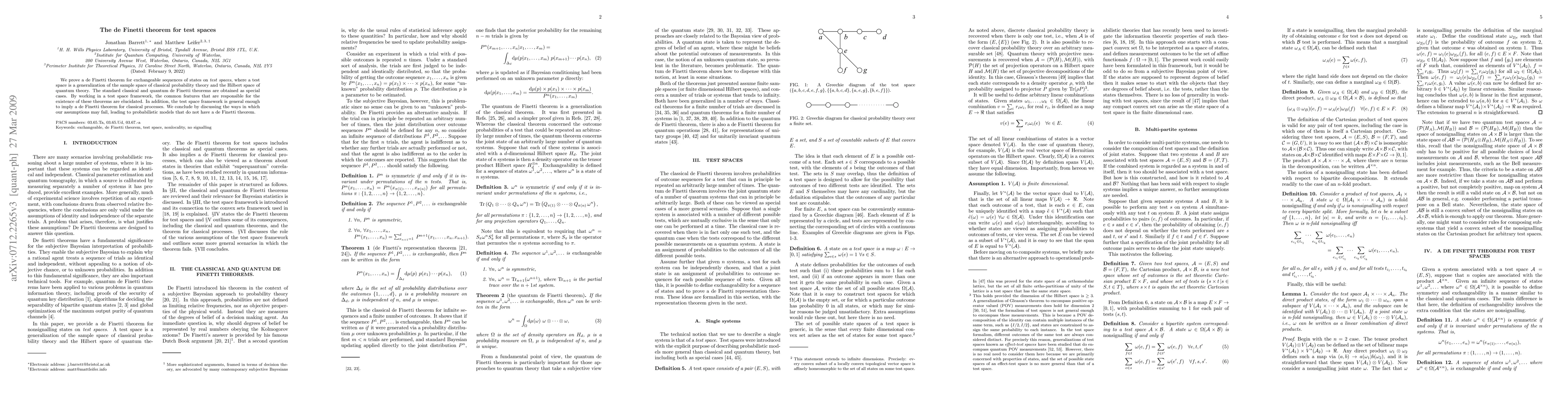 The paper proves a generalized de Finetti theorem for exchangeable sequences on test spaces, elucidating common features of classical and quantum de Finetti theorems, and discussing scenarios where the theorem does not hold. This framework extends applicability to classical processes and identifies failure conditions for de Finetti-like theorems.