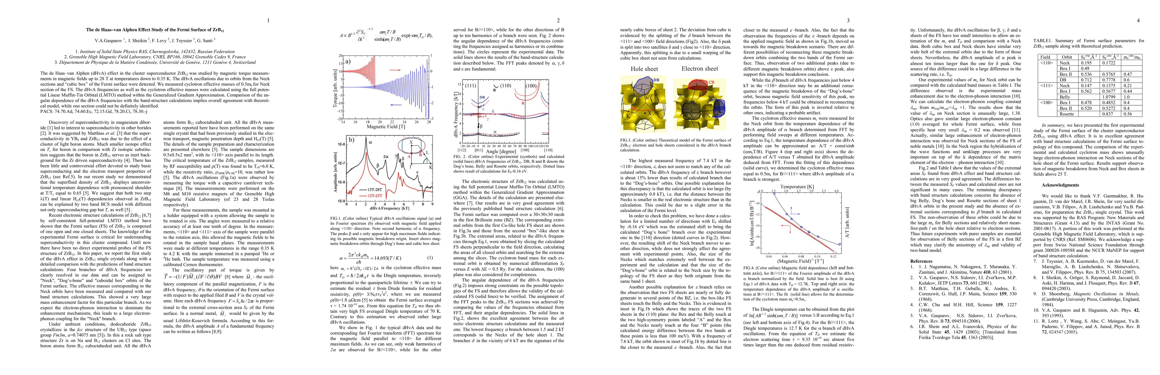 This study investigates the de Haas-van Alphen effect in ZrB12 using magnetic torque measurements, revealing oscillations from the Fermi surface's Neck sections and "Cubic Box" and determining cyclotron effective masses. The findings align with theoretical models, though one section remains inconclusive.