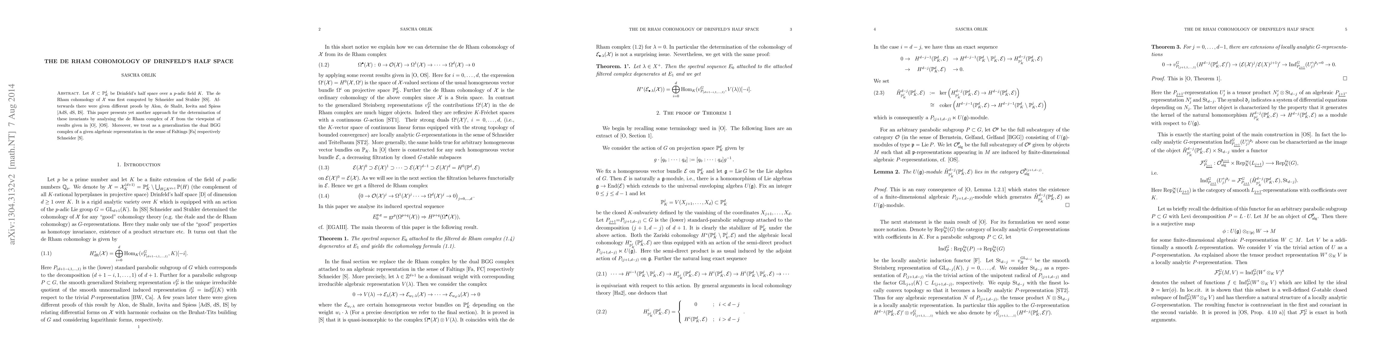 This paper offers a novel approach to determining the de Rham cohomology of Drinfeld's half space over a p-adic field, building on recent results by the author and contrasting with previous proofs by Schneider, Stuhler, and others.