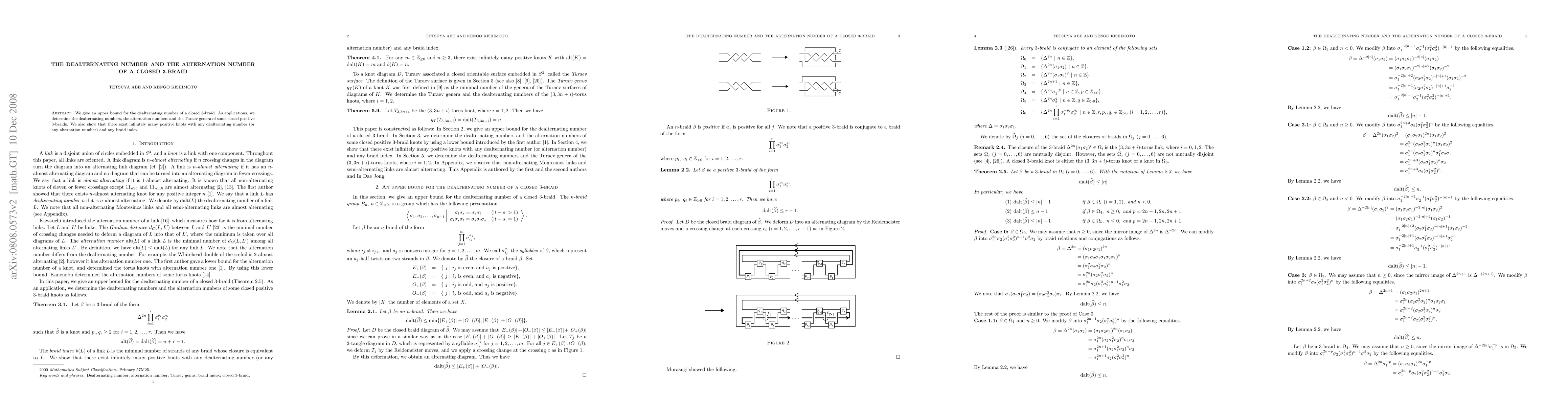 Researchers provide an upper bound for the dealternating number of closed 3-braids and find that infinitely many positive knots have any desired dealternating or alternation numbers.