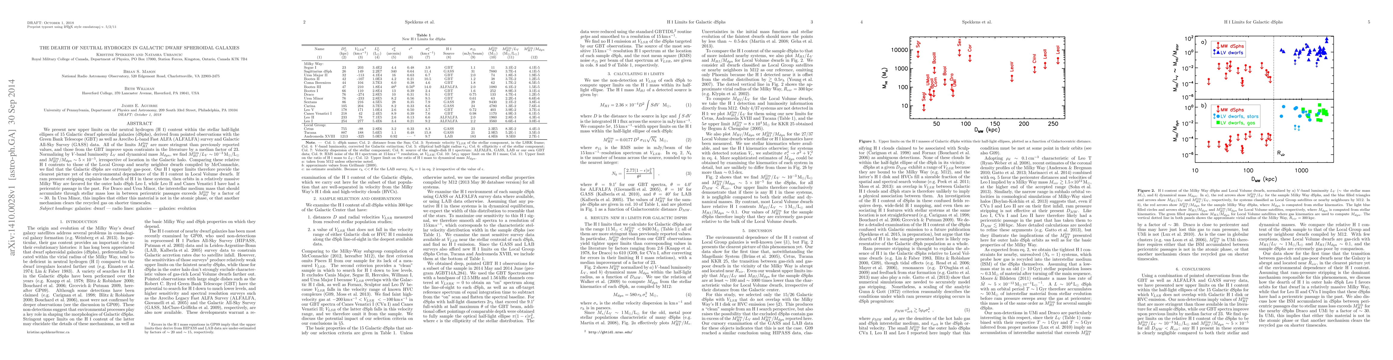 The study found that 15 Galactic dwarf spheroidal galaxies have extremely low levels of neutral hydrogen, with upper limits up to 30 times lower than previously reported values.