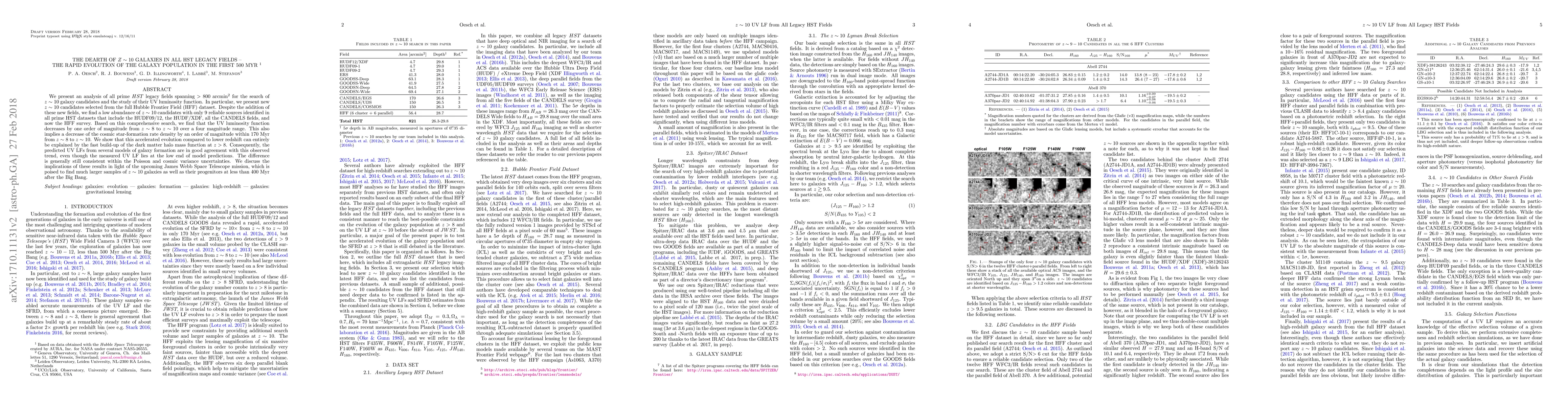 This study analyzes HST legacy fields to identify z~10 galaxies, finding only 9 reliable candidates across extensive surveys, revealing a significant drop in UV luminosity function and cosmic star-formation rate density by an order of magnitude from z~8 to z~10. The findings suggest rapid galaxy evolution due to the fast build-up of dark matter halos, with models predicting higher numbers than observed.