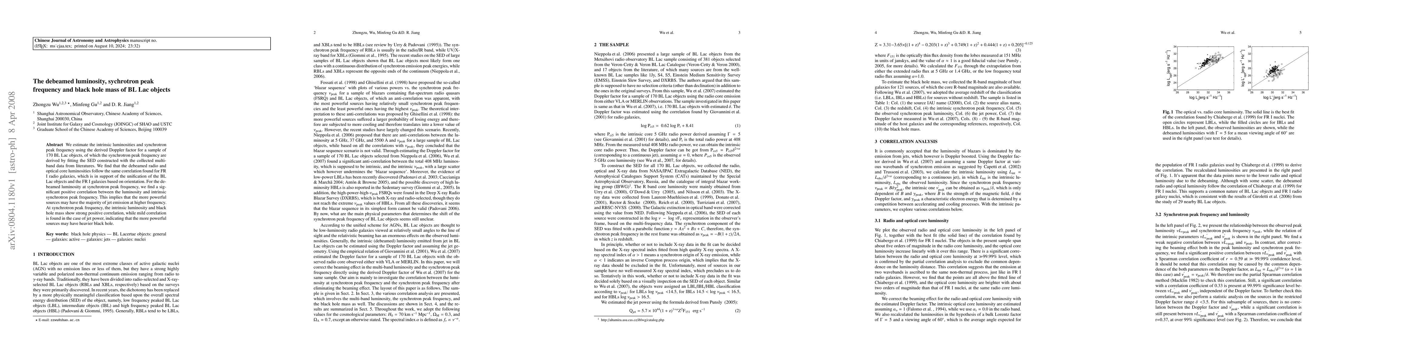 This study estimates the intrinsic luminosities and synchrotron peak frequencies of 170 BL Lac objects, revealing a correlation between debeamed luminosity and the synchrotron peak frequency, supporting the unification of BL Lac objects and FR I radio galaxies based on orientation. It also finds a strong positive correlation between intrinsic luminosity and black hole mass at the synchrotron peak frequency, suggesting more powerful sources may have heavier black holes.