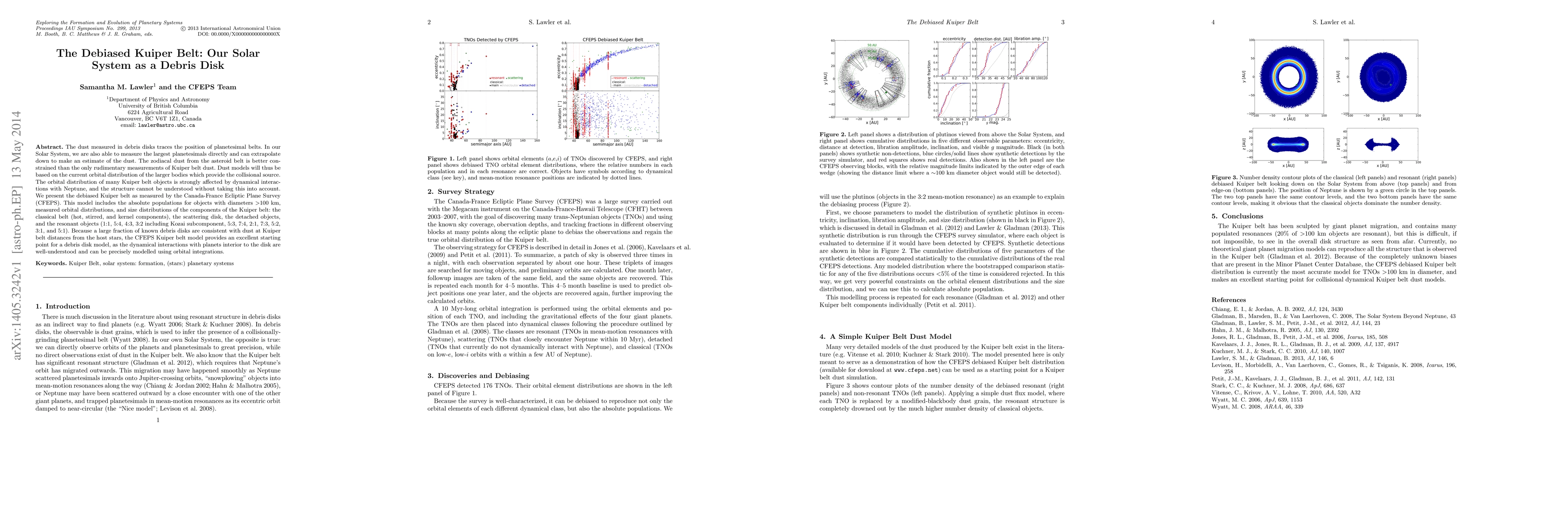 This paper presents a debiased model of the Kuiper belt, derived from the Canada-France Ecliptic Plane Survey (CFEPS), detailing the absolute populations and orbital distributions of objects larger than 100 km. The model accounts for dynamical interactions with Neptune, providing a comprehensive view of the Kuiper belt's components, which can serve as a foundation for understanding debris disks in other solar systems.