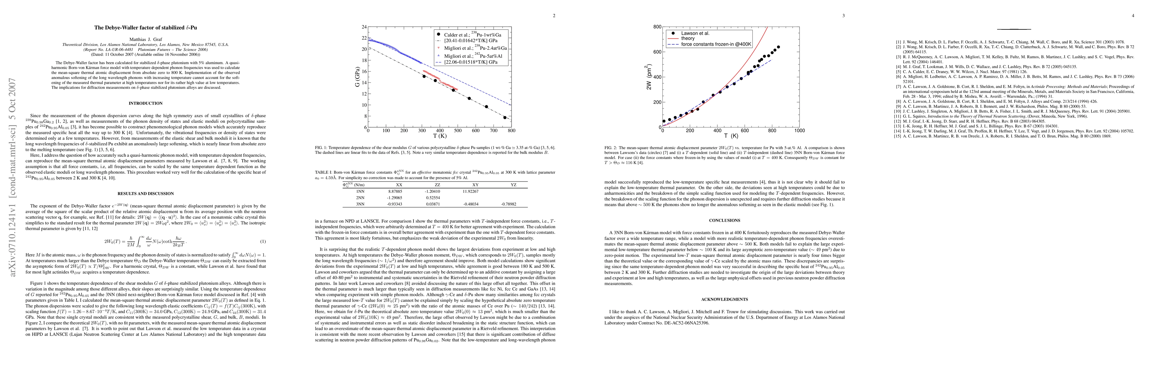 The Debye-Waller factor has been calculated for stabilized delta-phase plutonium with 5% aluminum. A quasi-harmonic Born-von Karman force model with temperature dependent phonon frequencies was used to calculate the mean-square thermal atomic displacement from absolute zero to 800 K. Implementation of the observed anomalous softening of the long wavelength phonons with increasing temperature cannot account for the softening of the measured thermal parameter at high temperatures nor for its rather high value at low temperatures. The implications for diffraction measurements on delta-phase stabilized plutonium alloys are discussed.