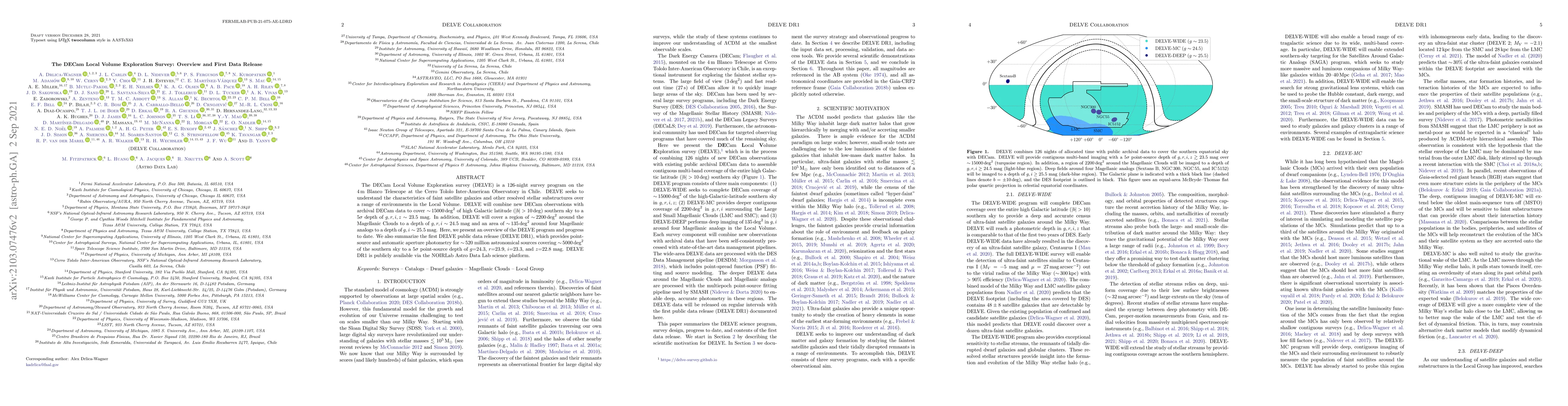 The DECam Local Volume Exploration (DELVE) survey aims to study faint satellite galaxies and stellar substructures in the Local Volume using the Blanco Telescope. The first data release (DELVE DR1) provides photometry for ~520 million sources across ~5000 deg$^2$ of the southern sky, accessible via the NOIRLab Astro Data Lab.