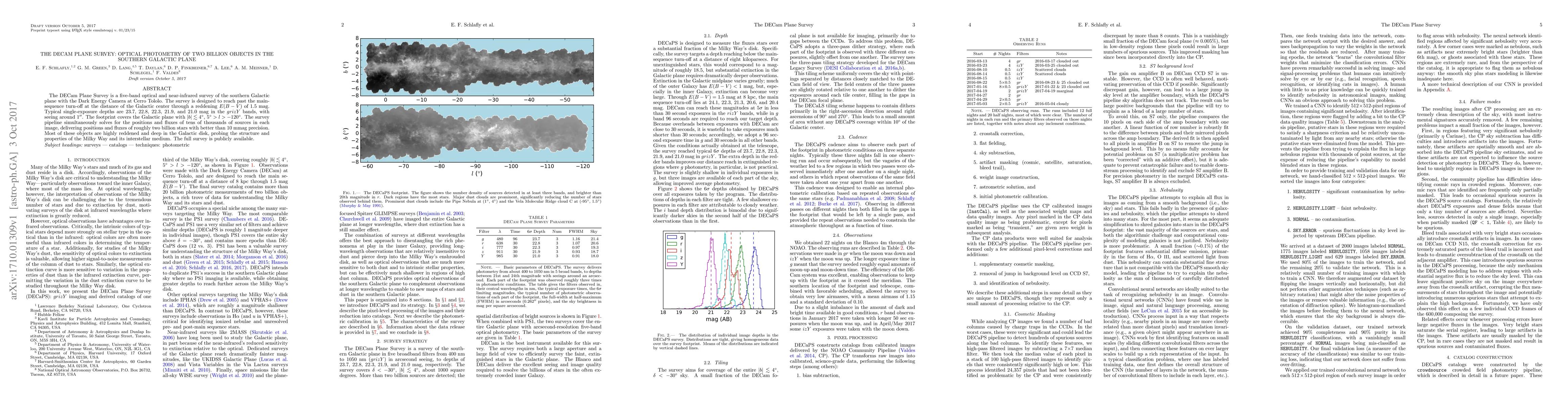 The DECam Plane Survey is a five-band optical and near-infrared survey of the southern Galactic plane with the Dark Energy Camera at Cerro Tololo. The survey is designed to reach past the main-sequence turn-off at the distance of the Galactic center through a reddening E(B-V) of 1.5 mag. Typical single-exposure depths are 23.7, 22.8, 22.3, 21.9, and 21.0 mag in the grizY bands, with seeing around 1 arcsecond. The footprint covers the Galactic plane with |b| < 4 degrees, 5 degrees > l > -120 degrees. The survey pipeline simultaneously solves for the positions and fluxes of tens of thousands of sources in each image, delivering positions and fluxes of roughly two billion stars with better than 10 mmag precision. Most of these objects are highly reddened and deep in the Galactic disk, probing the structure and properties of the Milky Way and its interstellar medium. The full survey is publicly available.