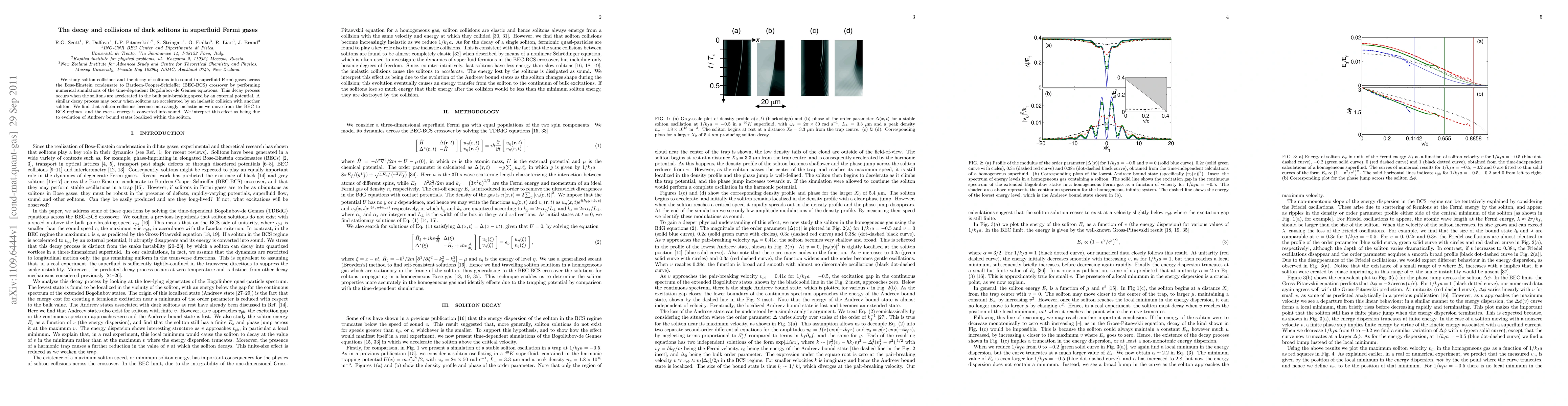 This research investigates the decay and collision dynamics of dark solitons in superfluid Fermi gases, revealing that soliton collisions become more inelastic transitioning from the BEC to BCS regimes, with excess energy converting into sound, attributed to the evolution of Andreev bound states. Numerical simulations of the Bogoliubov-de Gennes equations underpin these findings.