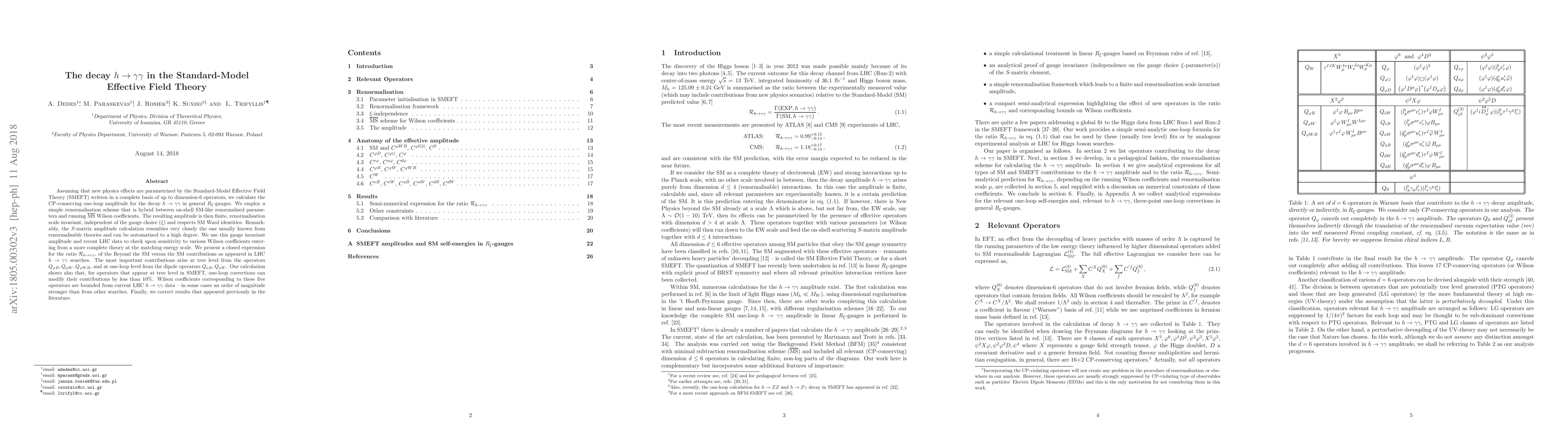 Assuming that new physics effects are parametrized by the Standard-Model Effective Field Theory (SMEFT) written in a complete basis of up to dimension-6 operators, we calculate the CP-conserving one-loop amplitude for the decay $h\to \gamma\gamma$ in general $R_\xi$-gauges. We employ a simple renormalisation scheme that is hybrid between on-shell SM-like renormalised parameters and running $\overline{\mathrm{MS}}$ Wilson coefficients. The resulting amplitude is then finite, renormalisation scale invariant, independent of the gauge choice ($\xi$) and respects SM Ward identities. Remarkably, the $S$-matrix amplitude calculation resembles very closely the one usually known from renormalisable theories and can be automatised to a high degree. We use this gauge invariant amplitude and recent LHC data to check upon sensitivity to various Wilson coefficients entering from a more complete theory at the matching energy scale. We present a closed expression for the ratio $\mathcal{R}_{h\to \gamma\gamma}$, of the Beyond the SM versus the SM contributions as appeared in LHC $h\to \gamma\gamma$ searches. The most important contributions arise at tree level from the operators $Q_{\varphi B}, Q_{\varphi W}, Q_{\varphi WB}$, and at one-loop level from the dipole operators $Q_{uB},Q_{uW}$. Our calculation shows also that, for operators that appear at tree level in SMEFT, one-loop corrections can modify their contributions by less than 10%. Wilson coefficients corresponding to these five operators are bounded from current LHC $h\to \gamma\gamma$ data -- in some cases an order of magnitude stronger than from other searches. Finally, we correct results that appeared previously in the literature.