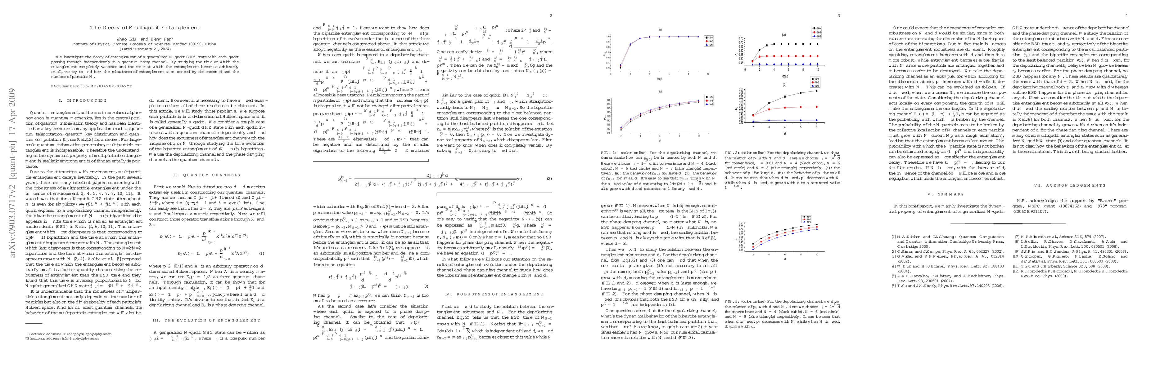 Researchers studied how entanglement in a multi-qudit system decays over time when passing through a quantum noisy channel, finding that its robustness depends on the system's dimension and number of particles.