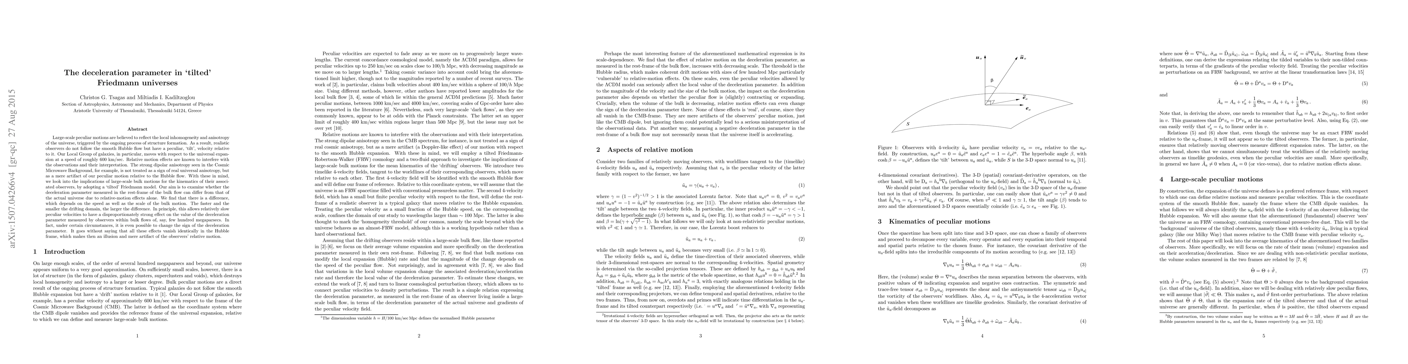 This paper investigates how large-scale peculiar motions in the universe affect the measurement of the deceleration parameter in a "tilted" Friedmann model. It finds that relative motion can cause the deceleration parameter to differ significantly from the actual universe's value, especially for faster and smaller bulk flows, potentially even reversing its sign.