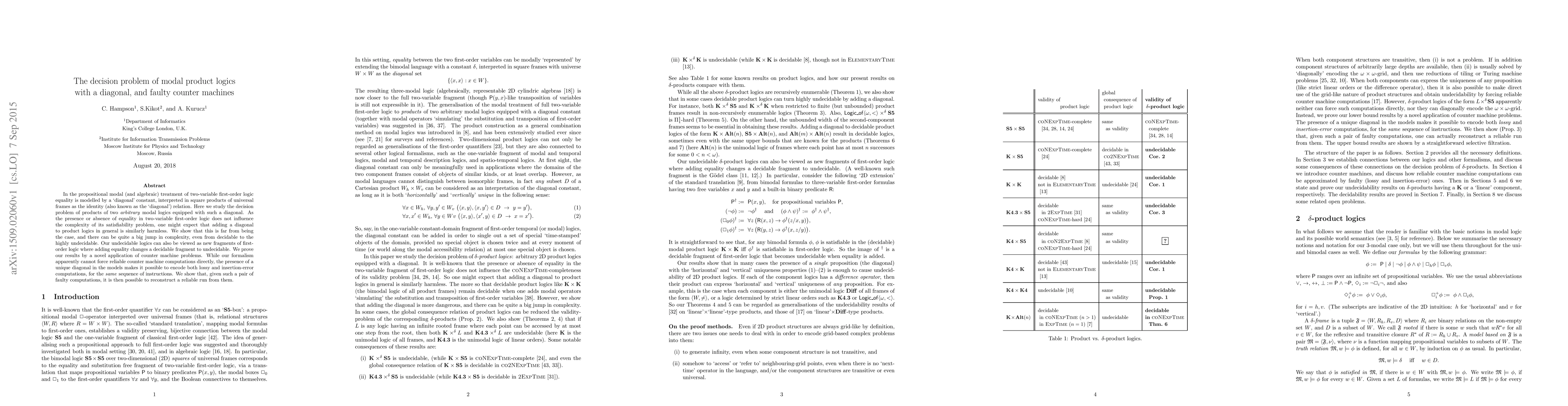 In the propositional modal (and algebraic) treatment of two-variable first-order logic equality is modelled by a `diagonal' constant, interpreted in square products of universal frames as the identity (also known as the `diagonal') relation. Here we study the decision problem of products of two arbitrary modal logics equipped with such a diagonal. As the presence or absence of equality in two-variable first-order logic does not influence the complexity of its satisfiability problem, one might expect that adding a diagonal to product logics in general is similarly harmless. We show that this is far from being the case, and there can be quite a big jump in complexity, even from decidable to the highly undecidable. Our undecidable logics can also be viewed as new fragments of first- order logic where adding equality changes a decidable fragment to undecidable. We prove our results by a novel application of counter machine problems. While our formalism apparently cannot force reliable counter machine computations directly, the presence of a unique diagonal in the models makes it possible to encode both lossy and insertion-error computations, for the same sequence of instructions. We show that, given such a pair of faulty computations, it is then possible to reconstruct a reliable run from them.