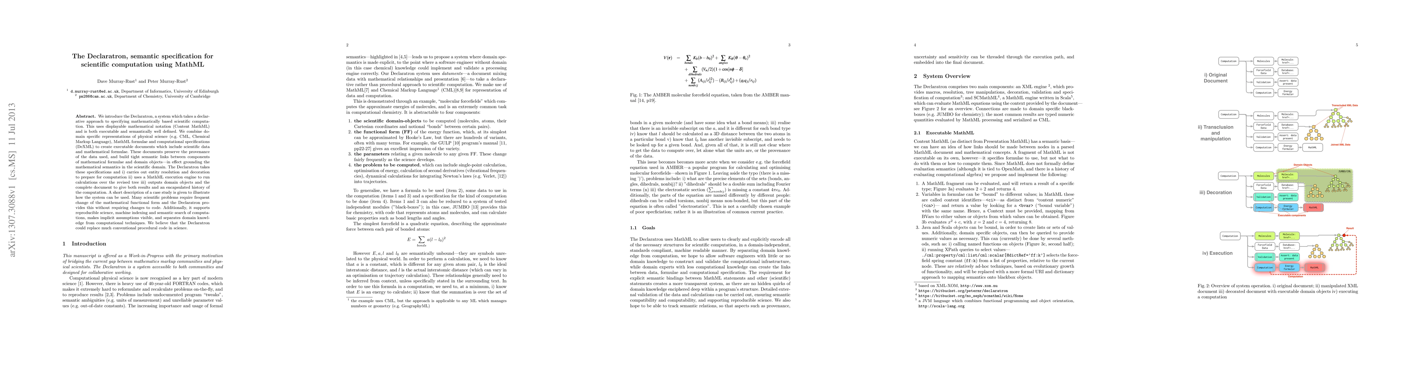 The Declaratron is a system for declaratively specifying scientifically-oriented computations using MathML, combining domain-specific representations and MathML to create executable documents that preserve data provenance and support reproducible science. It facilitates dynamic changes to mathematical models without altering code.