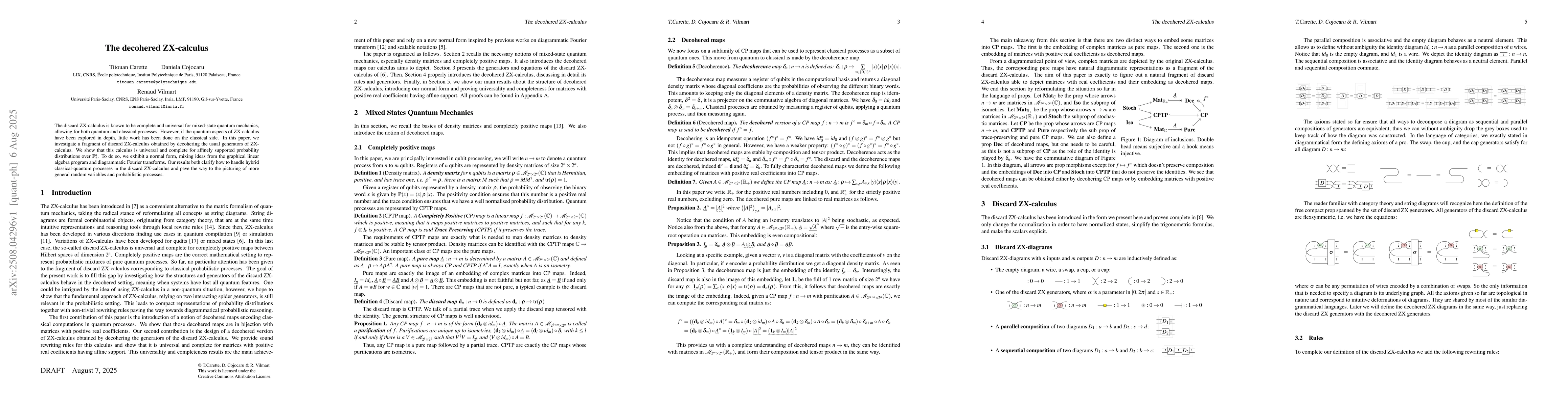 The discard ZX-calculus is known to be complete and universal for mixed-state quantum mechanics, allowing for both quantum and classical processes. However, if the quantum aspects of ZX-calculus have been explored in depth, little work has been done on the classical side. In this paper, we investigate a fragment of discard ZX-calculus obtained by decohering the usual generators of ZX-calculus. We show that this calculus is universal and complete for affinely supported probability distributions over $\mathbb{F}_{2}^{n}$. To do so, we exhibit a normal form, mixing ideas from the graphical linear algebra program and diagrammatic Fourier transforms. Our results both clarify how to handle hybrid classical-quantum processes in the discard ZX-calculus and pave the way to the picturing of more general random variables and probabilistic processes.