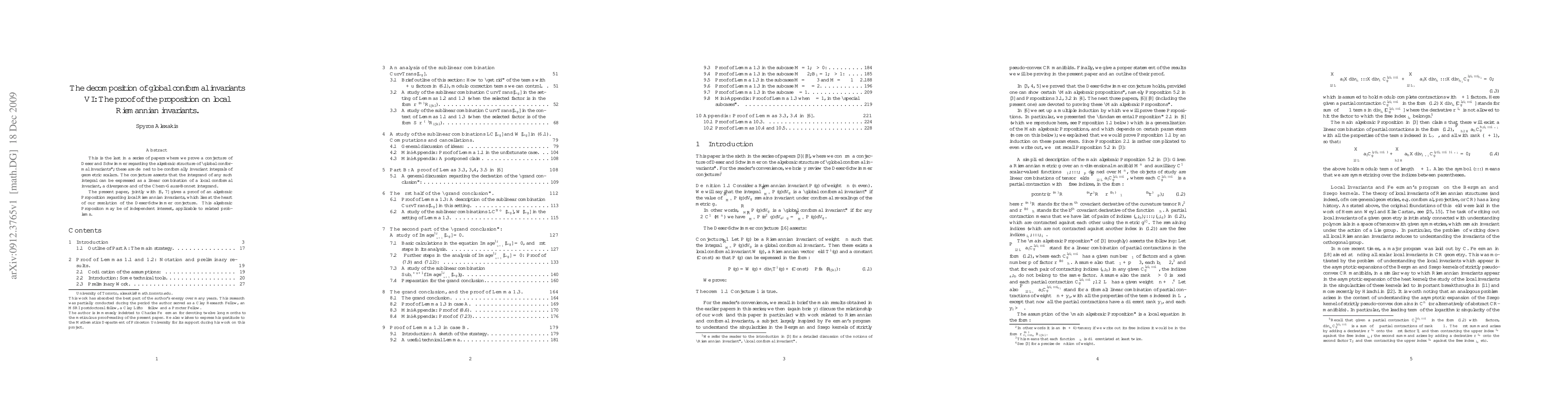 This is the last in a series of papers where we prove a conjecture of Deser and Schwimmer regarding the algebraic structure of ``global conformal invariants''; these are defined to be conformally invariant integrals of geometric scalars. The conjecture asserts that the integrand of any such integral can be expressed as a linear combination of a local conformal invariant, a divergence and of the Chern-Gauss-Bonnet integrand. The present paper, jointly with [6,7] gives a proof of an algebraic Proposition regarding local Riemannian invariants, which lies at the heart of our resolution of the Deser-Schwimmer conjecture. This algebraic Propositon may be of independent interest, applicable to related problems.