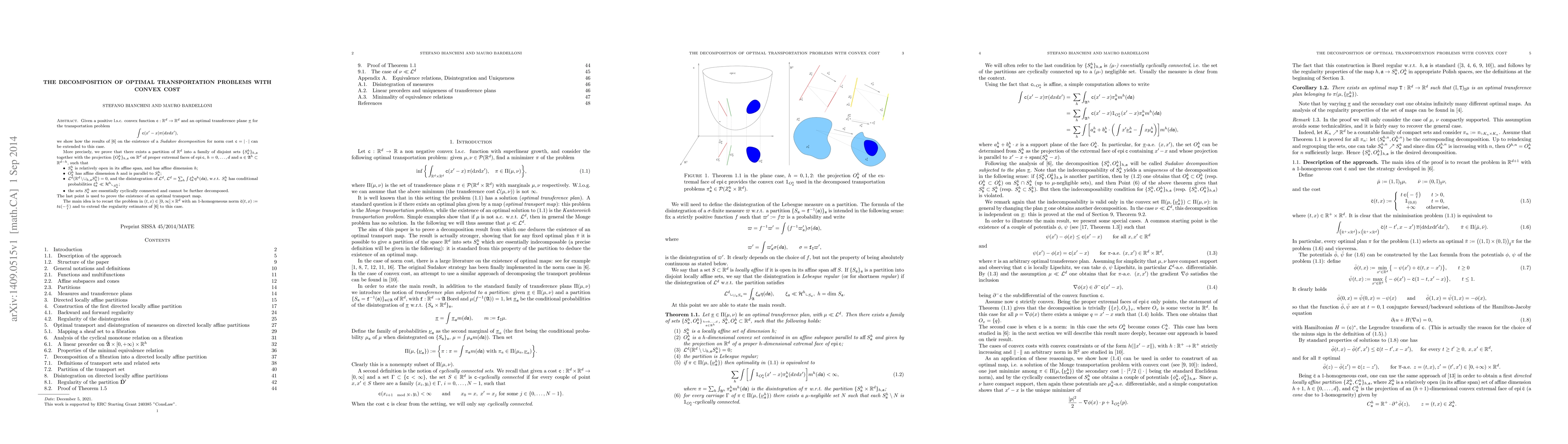 Given a positive l.s.c. convex function $\mathtt c : \mathbb R^d \to \mathbb R^d$ and an optimal transference plane $\underline{\pi}$ for the transportation problem \begin{equation*} \int \mathtt c(x'-x) \pi(dxdx'), \end{equation*} we show how the results of \cite{biadan} on the existence of a \emph{Sudakov decomposition} for norm cost $\mathtt c= |\cdot|$ can be extended to this case. More precisely, we prove that there exists a partition of $\mathbb R^d$ into a family of disjoint sets $\{S^h_\mathfrak a\}_{h,\mathfrak a}$ together with the projection $\{O^h_\mathfrak a\}_{h,\mathfrak a}$ on $\mathbb R^d$ of proper extremal faces of $\mathrm{epi}\, \mathtt c$, $h = 0,\dots,d$ and $\mathfrak a \in \mathfrak A^h \subset \mathbb R^{d-h}$, such that - $S^h_\mathfrak a$ is relatively open in its affine span, and has affine dimension $h$; \item $O^h_\mathfrak a$ has affine dimension $h$ and is parallel to $S^h_\mathfrak a$; - $\mathcal L^d(\mathbb R^d \setminus \cup_{h,\mathfrak a} S^h_\mathfrak a) = 0$, and the disintegration of $\mathcal L^d$, $\mathcal L^d = \sum_h \int \xi^h_\mathfrak a \eta^h(d\mathfrak a)$, w.r.t. $S^h_\mathfrak a$ has conditional probabilities $\xi^h_\mathfrak a \ll \mathcal H^h \llcorner_{S^h_\mathfrak a}$; - the sets $S^h_\mathfrak a$ are essentially cyclically connected and cannot be further decomposed. \end{list} The last point is used to prove the existence of an optimal transport map. The main idea is to recast the problem in $(t,x) \in [0,\infty] \times \mathbb R^d$ with an $1$-homogeneous norm $\bar{\mathtt c}(t,x) := t \mathtt c(- \frac{x}{t})$ and to extend the regularity estimates of \cite{biadan} to this case.