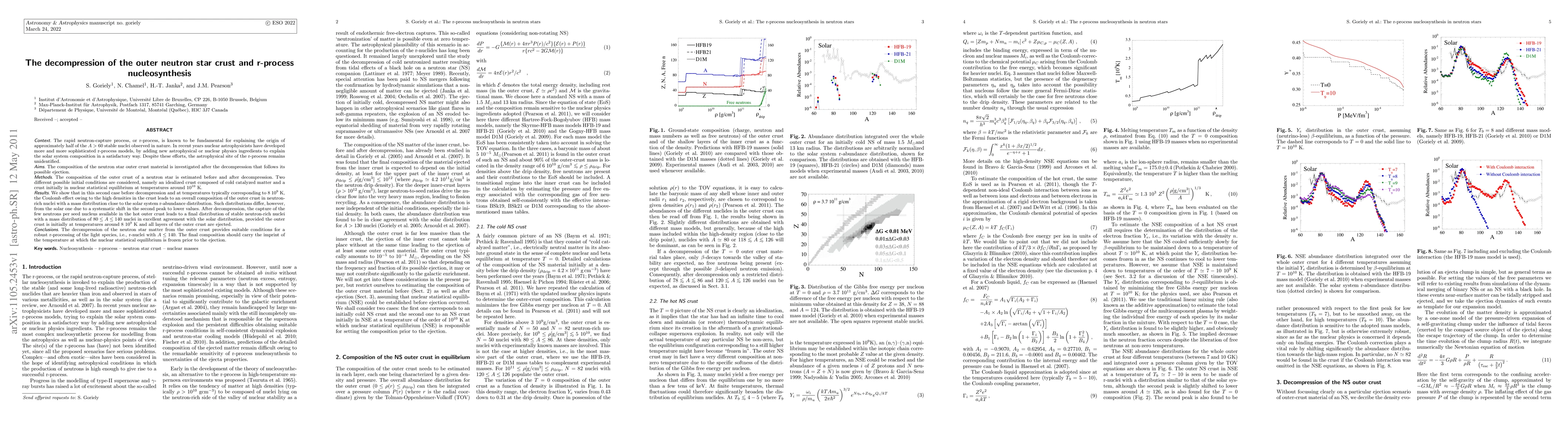 The rapid neutron-capture process, or r-process, is known to be fundamental for explaining the origin of approximately half of the A>60 stable nuclei observed in nature. In recent years nuclear astrophysicists have developed more and more sophisticated r-process models, by adding new astrophysical or nuclear physics ingredients to explain the solar system composition in a satisfactory way. Despite these efforts, the astrophysical site of the r-process remains unidentified. The composition of the neutron star outer crust material is investigated after the decompression that follows its possible ejection. The composition of the outer crust of a neutron star is estimated before and after decompression. Two different possible initial conditions are considered, namely an idealized crust composed of cold catalyzed matter and a crust initially in nuclear statistical equilibrium at temperatures around 10 GK. We show that in this second case before decompression and at temperatures typically corresponding to 8 GK, the Coulomb effect due to the high densities in the crust leads to an overall composition of the outer crust in neutron-rich nuclei with a mass distribution close to the solar system r-abundance distribution. Such distributions differ, however, from the solar one due to a systematic shift in the second peak to lower values. After decompression, the capture of the few neutrons per seed nucleus available in the hot outer crust leads to a final distribution of stable neutron-rich nuclei with a mass distribution of 80 < A < 140 nuclei in excellent agreement with the solar distribution, provided the outer crust is initially at temperatures around 8 GK and all layers of the outer crust are ejected. The decompression of the neutron star matter from the outer crust provides suitable conditions for a robust r-processing of the light species, i.e., r-nuclei with A < 140.