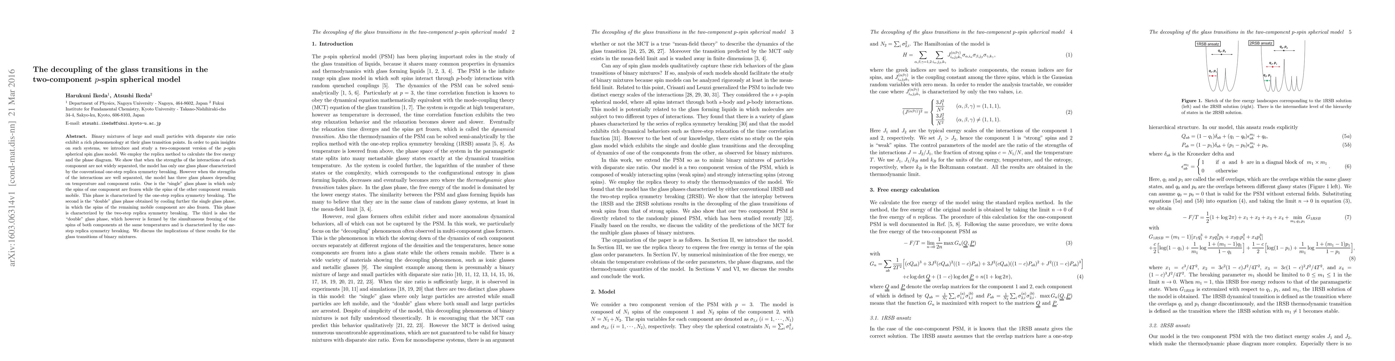 This paper investigates a two-component $p$-spin spherical model to understand the glass transitions in binary mixtures of particles with different sizes. It reveals that when interaction strengths differ significantly, the model exhibits three distinct glass phases, including a "single" and two types of "double" glass phases, characterized by different replica symmetry breaking patterns.
