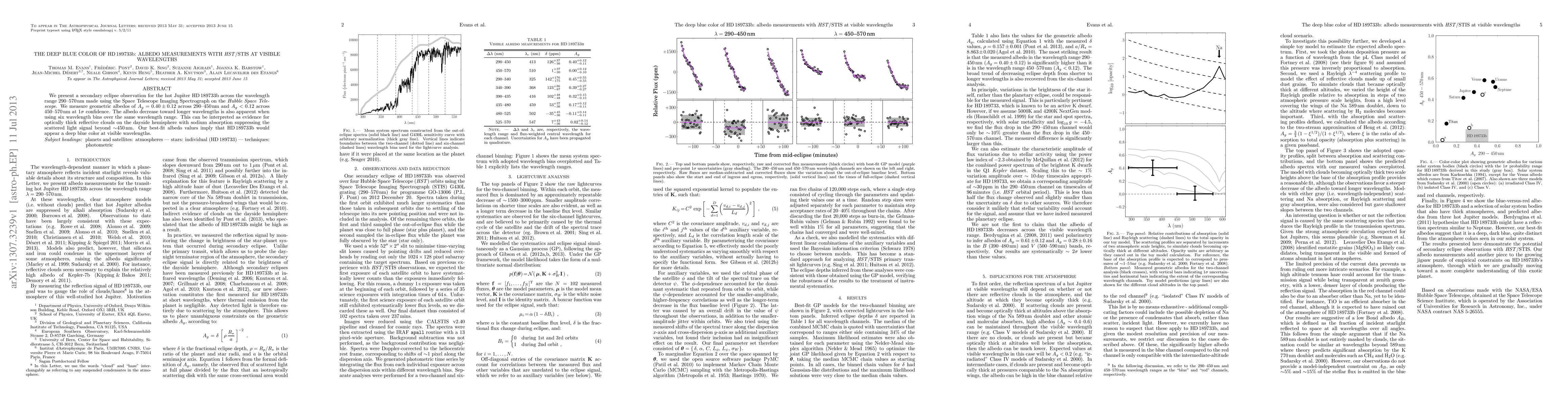 This study uses Hubble Space Telescope observations to measure the geometric albedos of HD189733b, finding a deep blue color due to high albedo in the 290-450nm range and low albedo beyond 450nm, suggesting reflective clouds and sodium absorption.