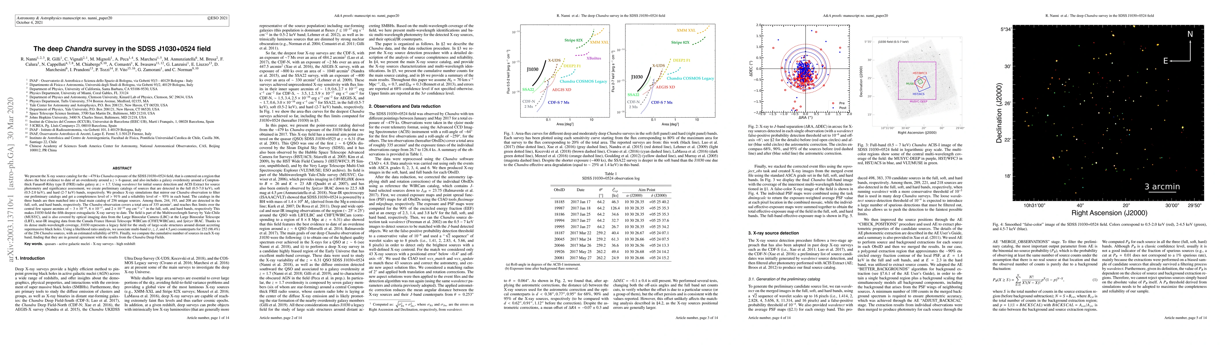 This paper presents an X-ray source catalog from a 479 ks Chandra observation of the SDSS J1030+0524 field, revealing 256 unique X-ray sources, making it the fifth deepest extragalactic survey. The field is rich in multi-wavelength data, providing a comprehensive study of large-scale structures around distant quasars and radio galaxies.