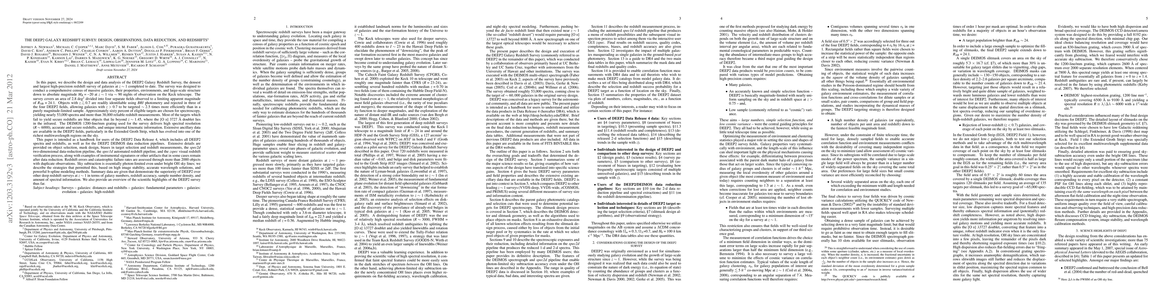 The DEEP2 Galaxy Redshift Survey is the largest and most precise redshift survey of galaxies at z ~ 1, providing nearly 53,000 spectra and 38,000 reliable redshift measurements. It covers 2.8 deg^2 and uses the DEIMOS spectrograph to achieve high spectral resolution and accurate redshifts, offering extensive ancillary data for multiwavelength studies.