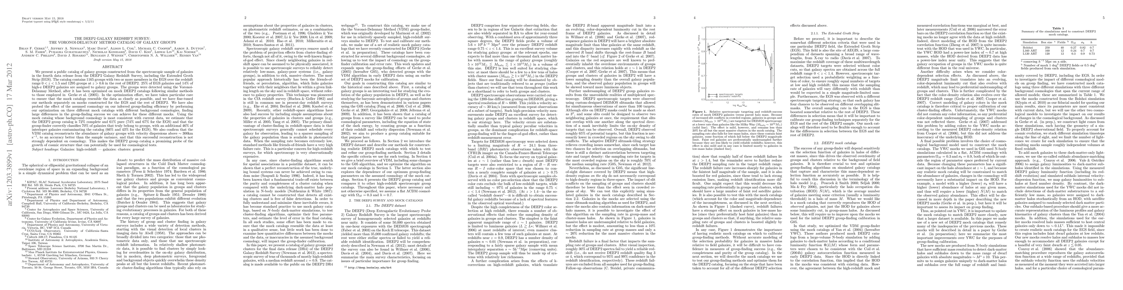 The DEEP2 Galaxy Redshift Survey presents a catalog of 1165 galaxy groups in the Extended Groth Strip and 1295 groups in other regions, identified using the optimized Voronoi-Delaunay Method. The catalog is 72% complete and 61% pure, with significant variations based on assumed cosmology.