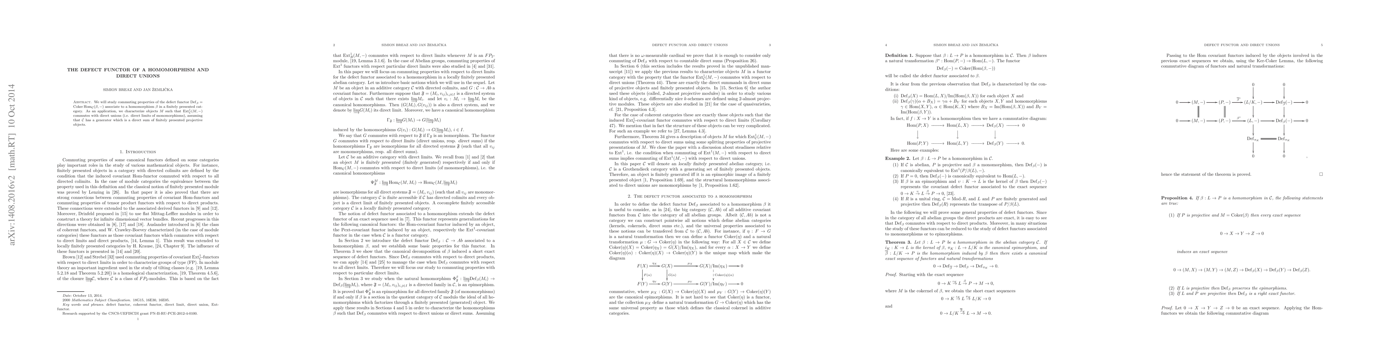 Summary: The paper investigates the commuting properties of the defect functor associated with a homomorphism in a finitely presented category and applies this to characterize objects whose $\mathrm{Ext}^1$ functor commutes with direct unions, given that the category has a suitable generator.
