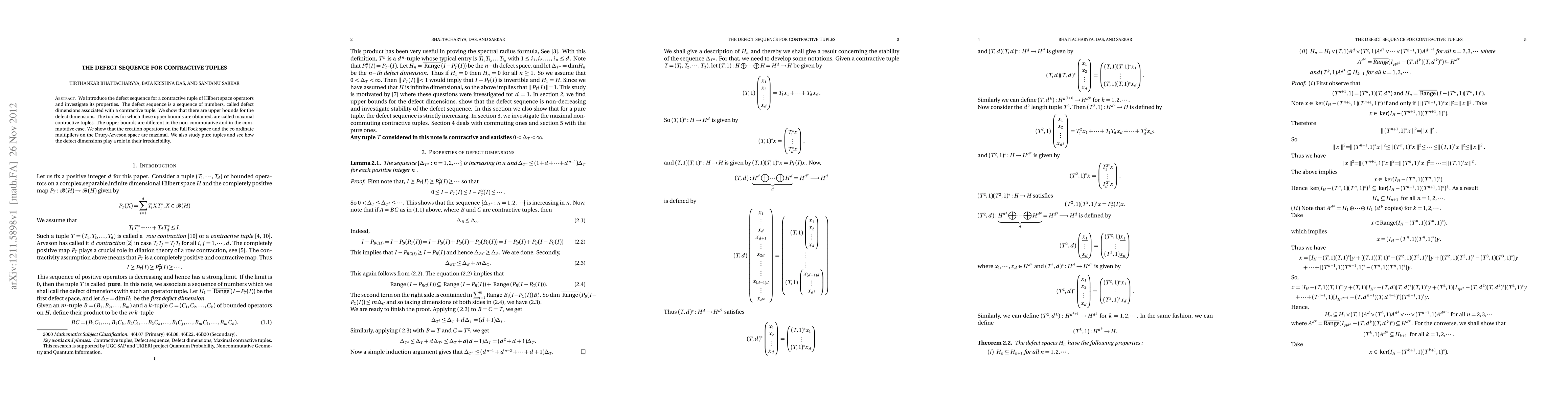 This paper introduces the defect sequence for contractive tuples of Hilbert space operators, analyzing their associated defect dimensions and demonstrating upper bounds specific to non-commutative and commutative cases. Maximal contractive tuples achieving these bounds are identified, including creation operators and coordinate multipliers. The study also explores the role of defect dimensions in the irreducibility of pure tuples.
