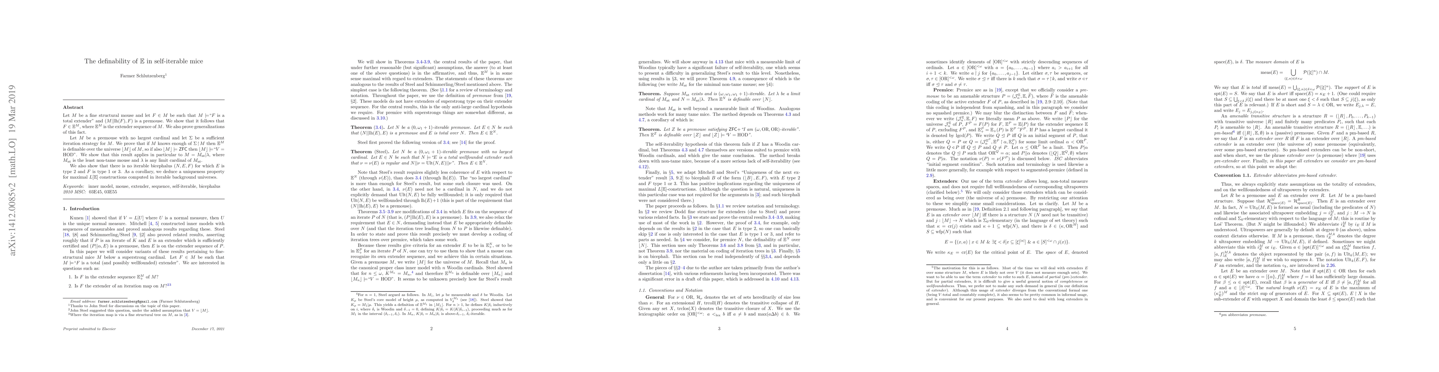 The paper introduces and proves significant results concerning the definability of extender sequences in self-iterable mice, advancing the theoretical framework of fine structural set theory and inner model theory.