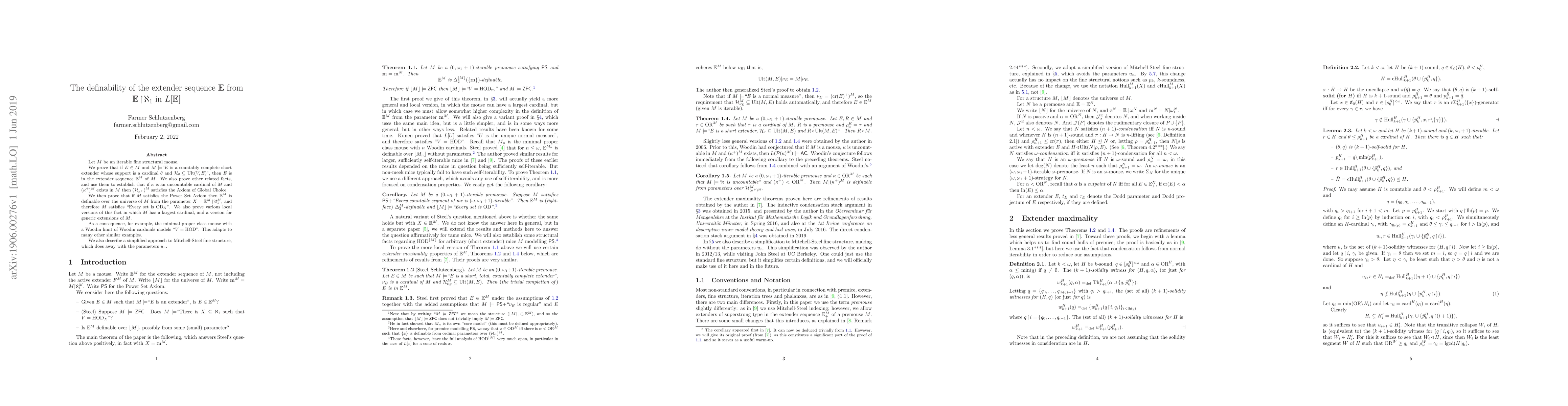 The paper introduces a method for defining extender sequences using a simplified approach to Mitchell-Steel fine structure, eliminating the need for parameters un.
