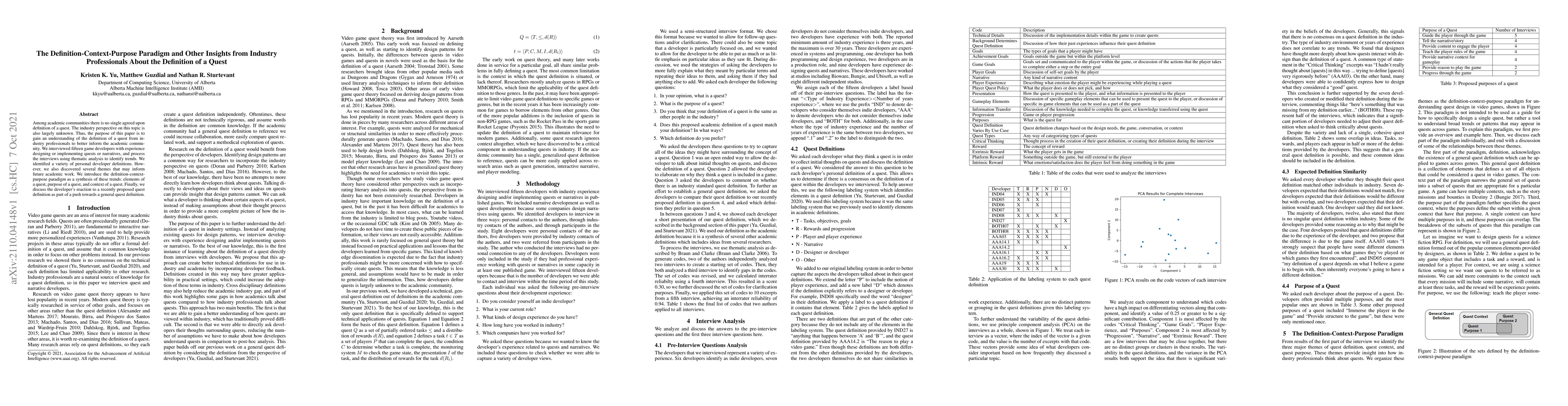 Among academic communities there is no single agreed upon definition of a quest. The industry perspective on this topic is also largely unknown. Thus, thee purpose of this paper is to gain an understanding of the definition of a quest from industry professionals to better inform the academic community. We interviewed fifteen game developers with experience designing or implementing quests or narratives, and process the interviews using thematic analysis to identify trends. We identified a variety of personal developer definitions. However, we also discovered several themes that may inform future academic work. We introduce the definition-context-purpose paradigm as a synthesis of these trends: elements of a quest, purpose of a quest, and context of a quest. Finally, we discuss the developer's reaction to a recently proposed quest definition as part of a push towards a general quest definition.
