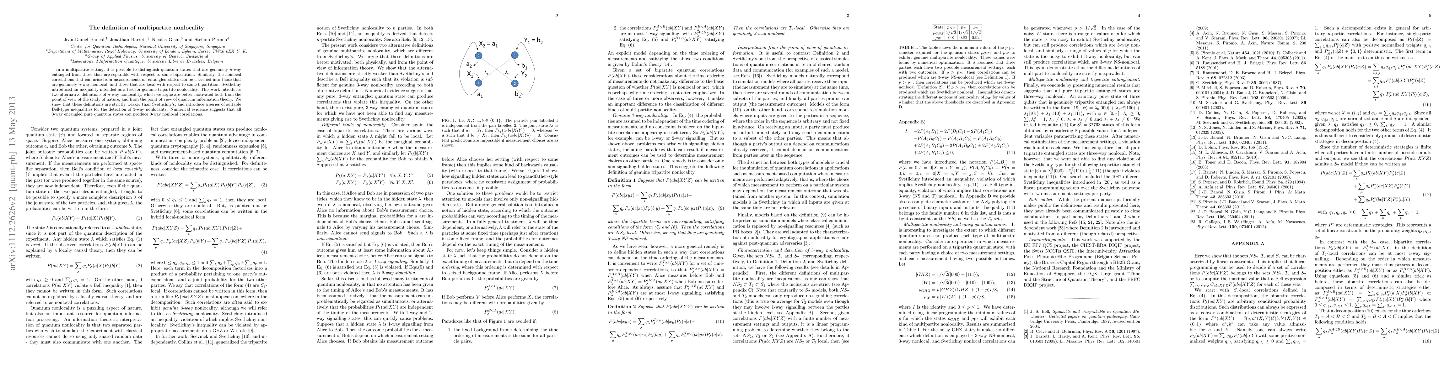 In a multipartite setting, it is possible to distinguish quantum states that are genuinely $n$-way entangled from those that are separable with respect to some bipartition. Similarly, the nonlocal correlations that can arise from measurements on entangled states can be classified into those that are genuinely $n$-way nonlocal, and those that are local with respect to some bipartition. Svetlichny introduced an inequality intended as a test for genuine tripartite nonlocality. This work introduces two alternative definitions of $n$-way nonlocality, which we argue are better motivated both from the point of view of the study of nature, and from the point of view of quantum information theory. We show that these definitions are strictly weaker than Svetlichny's, and introduce a series of suitable Bell-type inequalities for the detection of 3-way nonlocality. Numerical evidence suggests that all 3-way entangled pure quantum states can produce 3-way nonlocal correlations.