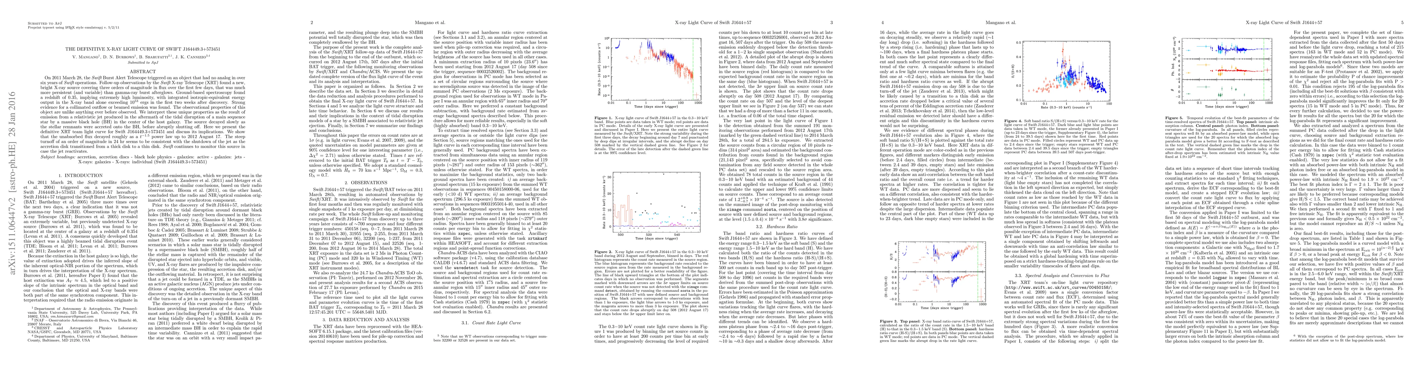 This paper presents the definitive X-ray light curve of Swift J164449.3+573451, a unique transient source discovered in 2011, characterized by an unprecedented luminosity and persistent X-ray variability. The source's decay and abrupt shutdown suggest a relativistic jet from a tidal disruption event by a supermassive black hole.