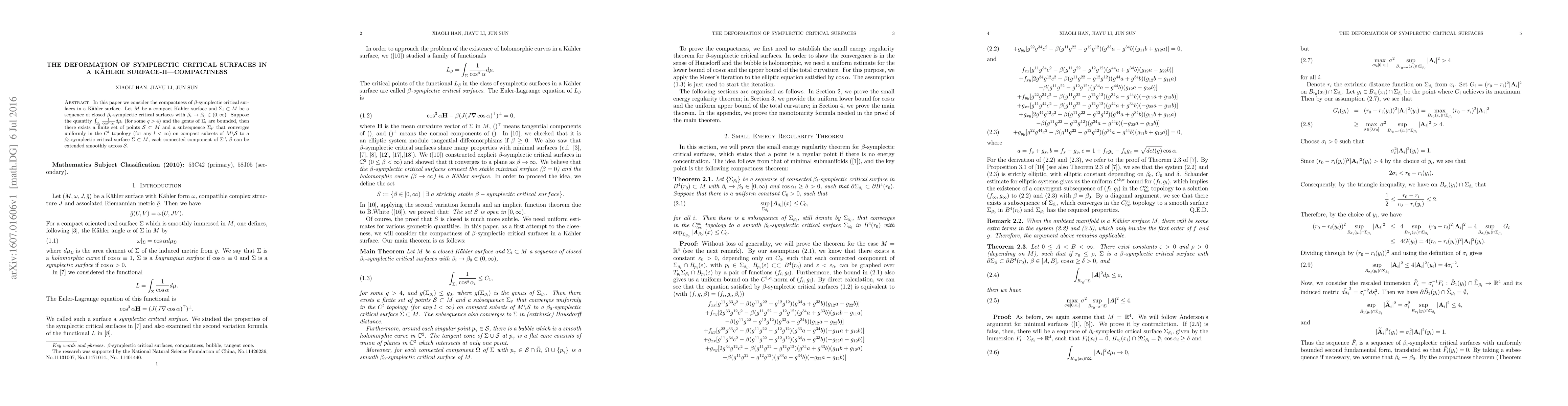 This paper proves the compactness of $\beta$-symplectic critical surfaces in a K\"ahler surface under certain bounded conditions, showing that a subsequence converges uniformly to a limit surface, with each component extendable across singularities.