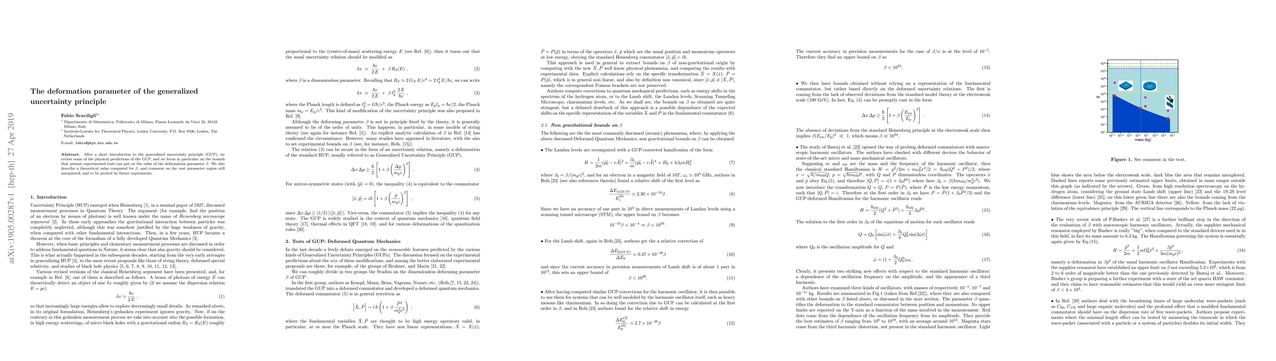 This paper discusses the generalized uncertainty principle (GUP) and its deformation parameter u221au03bc, reviewing current experimental bounds and presenting a theoretical computation for u221au03bc. It highlights the large, unexplored parameter region for future experimental tests.