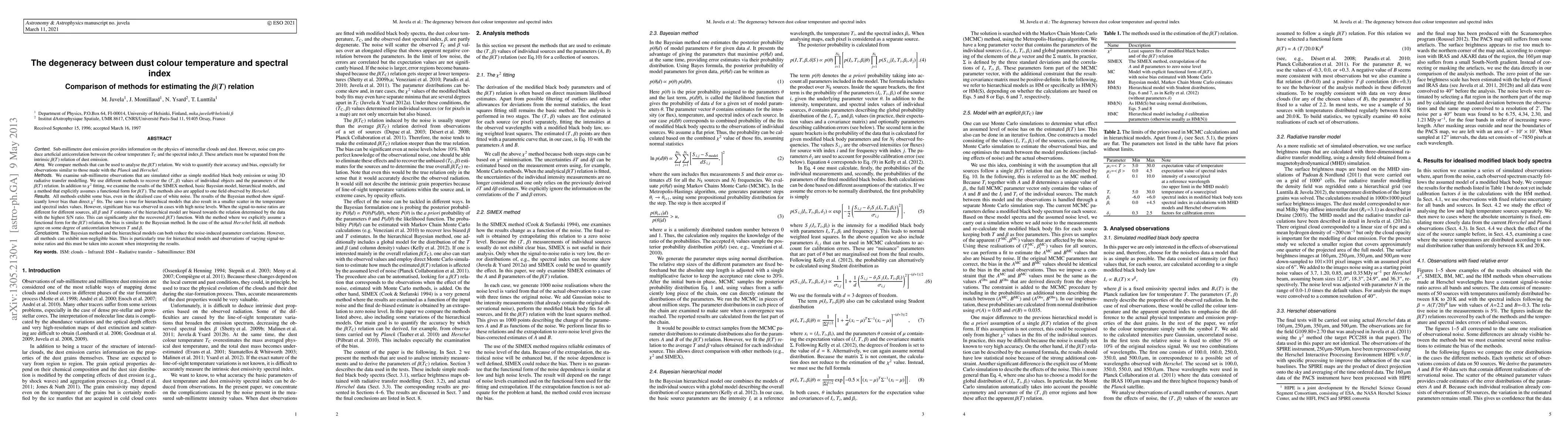 Sub-millimetre dust emission provides information on the physics of interstellar clouds and dust. Noise can produce anticorrelation between the colour temperature T_C and the spectral index beta. This must be separated from the intrinsic beta(T) relation of dust. We compare methods for the analysis of the beta(T) relation. We examine sub-millimetre observations simulated as simple modified black body emission or using 3D radiative transfer modelling. In addition to chi^2 fitting, we examine the results of the SIMEX method, basic Bayesian model, hierarchical models, and one method that explicitly assumes a functional form for beta(T). All methods exhibit some bias. Bayesian method shows significantly lower bias than direct chi^2 fits. The same is true for hierarchical models that also result in a smaller scatter in the temperature and spectral index values. However, significant bias was observed in cases with high noise levels. Beta and T estimates of the hierarchical model are biased towards the relation determined by the data with the highest S/N ratio. This can alter the recovered beta(T) function. With the method where we explicitly assume a functional form for the beta(T) relation, the bias is similar to the Bayesian method. In the case of an actual Herschel field, all methods agree, showing some degree of anticorrelation between T and beta. The Bayesian method and the hierarchical models can both reduce the noise-induced parameter correlations. However, all methods can exhibit non-negligible bias. This is particularly true for hierarchical models and observations of varying signal-to-noise ratios and must be taken into account when interpreting the results.