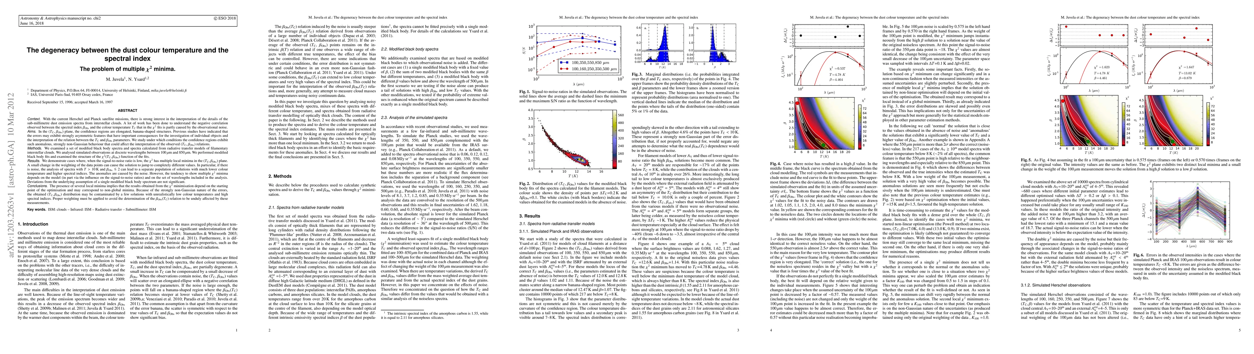 Because of the Herschel and Planck satellite missions, there is strong interest in the interpretation the sub-millimetre dust spectra from interstellar clouds. Much work has been done to understand the dependence between the spectral index beta_Obs and the colour temperature T_C that is partly caused by the noise. The (T_C, beta_Obs) confidence regions are elongated, banana-shaped structures. We studied under which conditions these exhibit anomalous, strongly non-Gaussian behaviour that could affect the interpretation of the observed (T_C, beta_Obs) relations. We examined modified black body spectra and spectra calculated from radiative transfer models of filamentary clouds at wavelengths 100um-850um. We performed modified black body fits and examined the structure of the chi^2(T_, beta_Obs) function. We show cases where, when the signal-to-noise ratio is low, the chi^2 has multiple local minima in the (T_C, beta_Obs) plane. A small change in the weighting of the data points can cause the solution to jump to completely different values. In particular, noise can lead to the appearance of a separate population of solutions with low colour temperatures and high spectral indices. The anomalies are caused by the noise but the tendency to show multiple chi^2 minima depends on the model and the wavelengths analysed. Deviations from the assumed single modified black body spectrum are not important. The presence of local minima implies that the results obtained from the chi^2 minimisation depend on the starting point of the optimisation and may correspond to non-global minima. The (T_C,beta_Obs) distributions may be contaminated by a few solutions with unrealistically low colour temperatures and high spectral indices. Proper weighting must be applied to avoid the determination of the beta_Obs(T_C) relation to be unduly affected by these measurements.