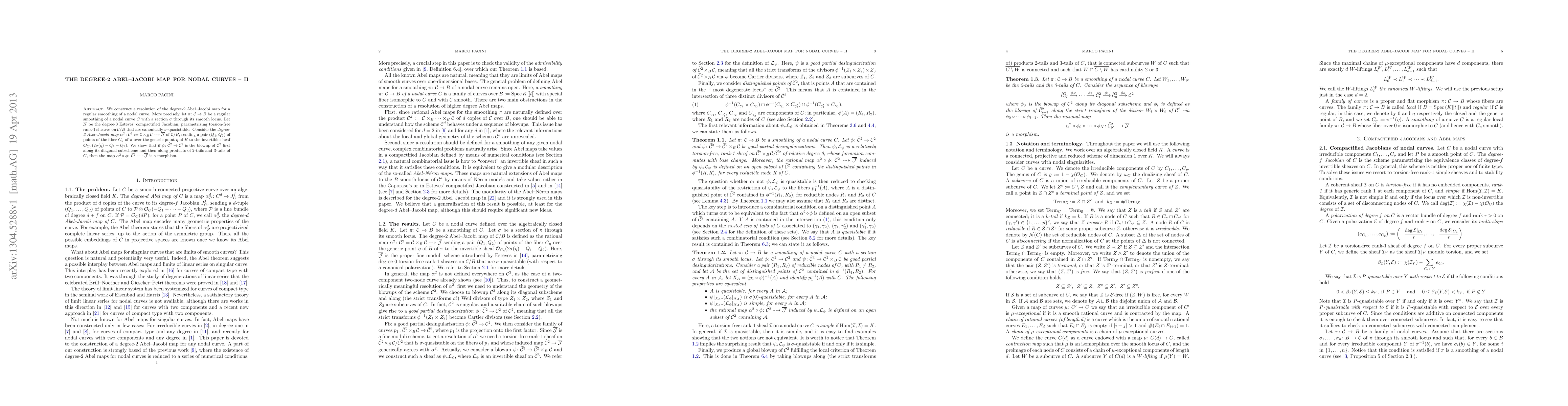The paper constructs a resolution of the degree-2 Abel-Jacobi map for a regular smoothing of a nodal curve using a combinatorial approach involving distinguished points and their properties.
