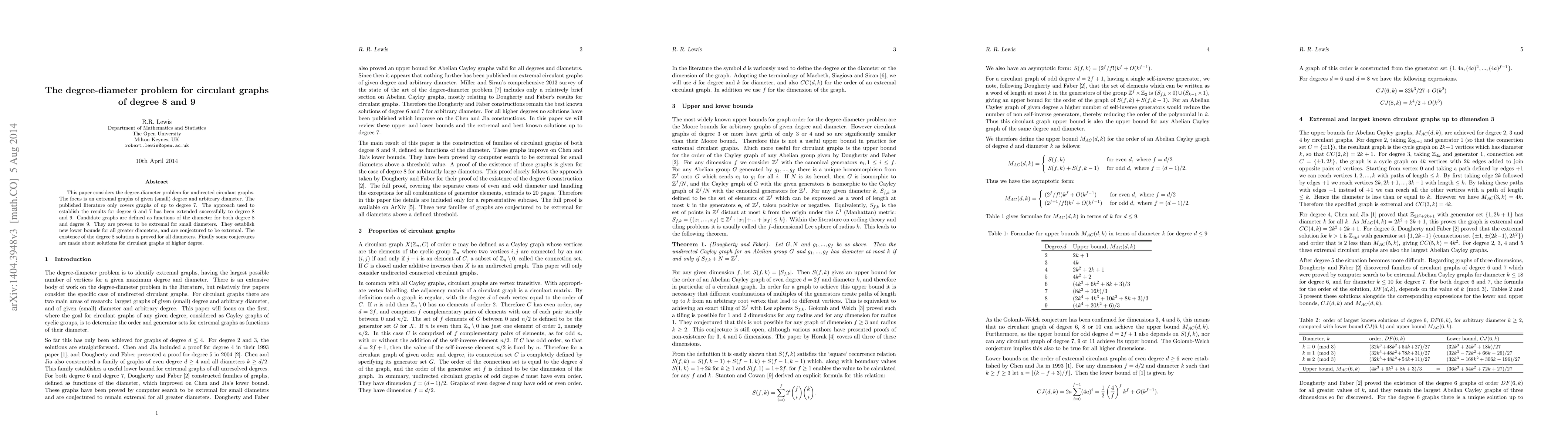 This paper extends the degree-diameter problem results for circulant graphs to degrees 8 and 9, proving extremality for small diameters and establishing new lower bounds for larger diameters, while making conjectures for higher degrees.