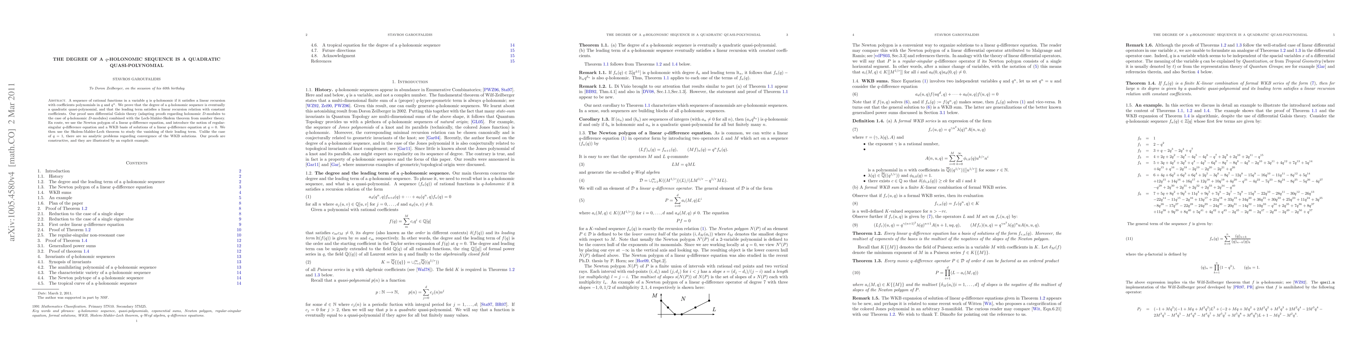 The paper proves that the degree of a $q$-holonomic sequence, which satisfies a linear recursion with polynomial coefficients in $q$ and $q^n$, is eventually a quadratic quasi-polynomial. The proof employs differential Galois theory and the Lech-Mahler-Skolem theorem, alongside the introduction of regular-singular $q$-difference equations and WKB basis solutions.