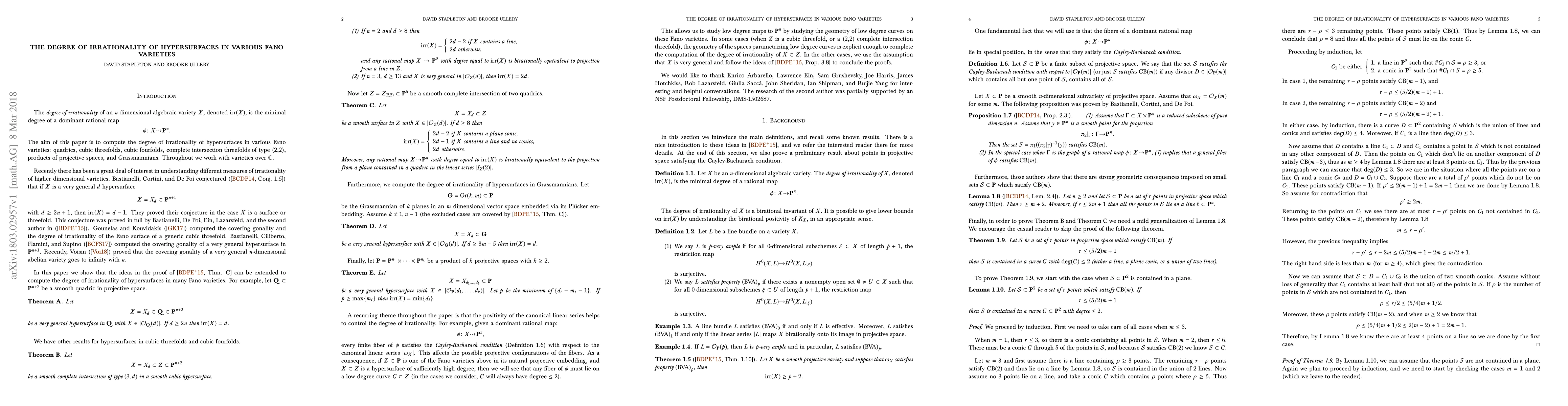 This paper computes the degree of irrationality of high-degree hypersurfaces in various Fano varieties, extending previous techniques. It finds that low-degree rational map fibers tend to lie on low-degree curves in the Fano varieties, facilitating the study of these maps through curve geometry.